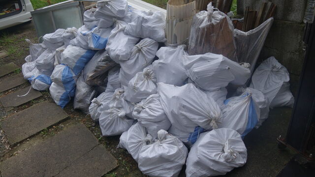 産廃回収のトラックに一つ一つ手で積み込みました。