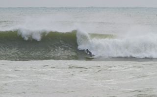 昨日は短い板しか無かったので入れなかったので、今日朝イチから6'3をチューンアップして、松部チェックするも…