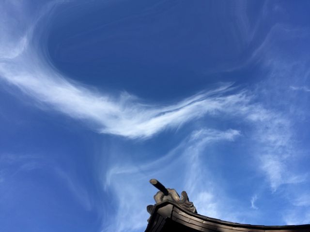 お参りを済ませ空を見て休憩してたら空に大きなうねり、ギザギザがあってまるで龍だ。
