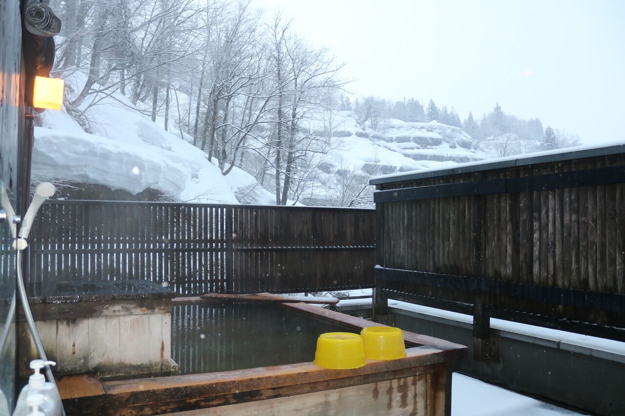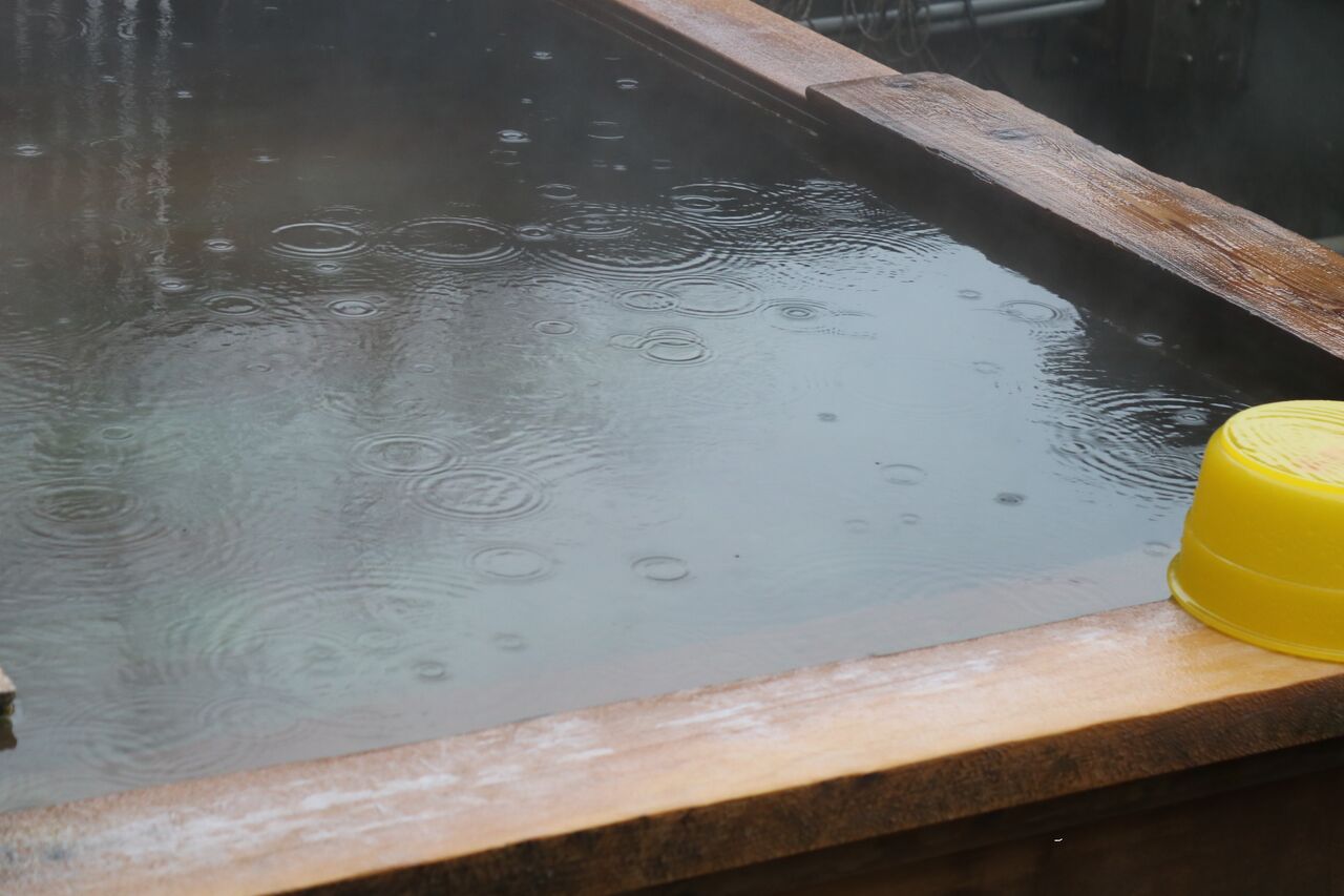 (雨の屋上貸切露天風呂)