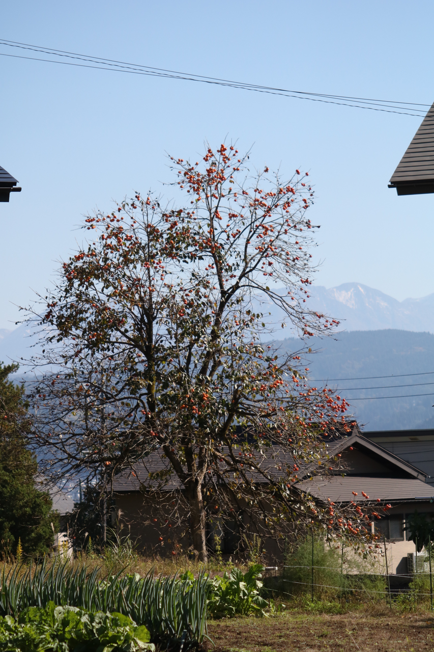 名峰と柿の木