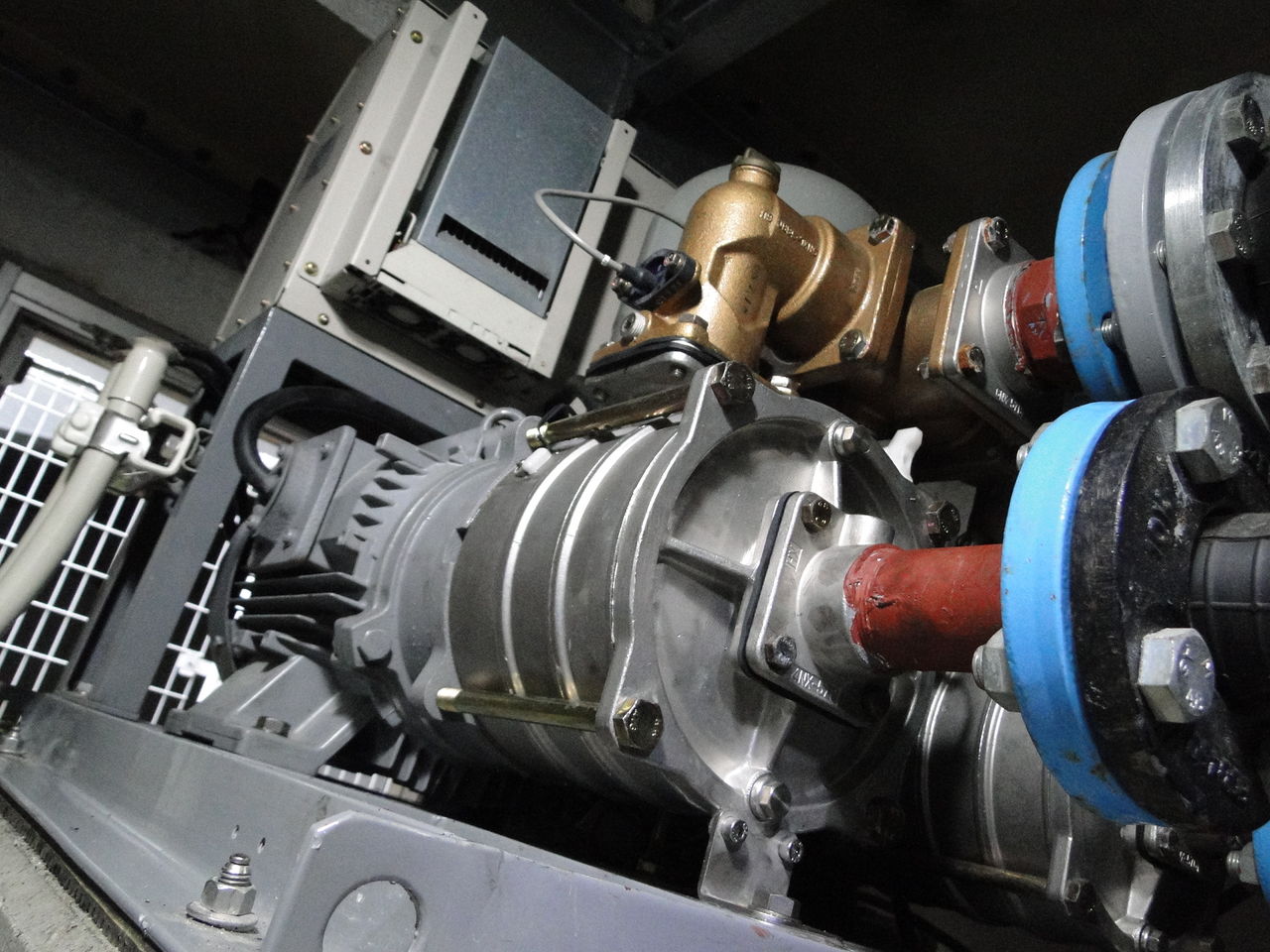大型マンションの給水用ユニットポンプの2号機より水漏れがしているとの事で、修理工事を行う事となりました。
