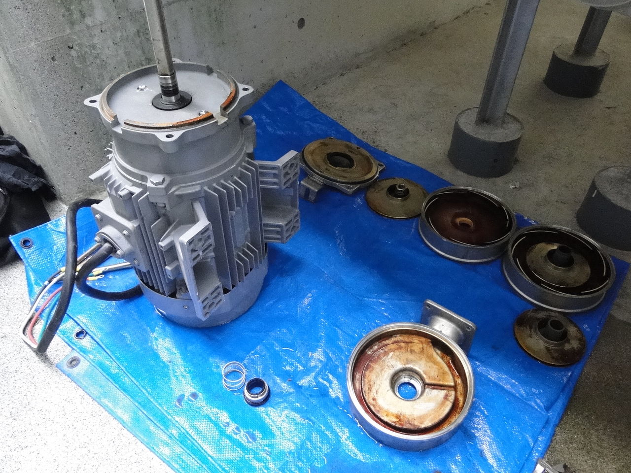 この水漏れを放置すると、モーター内部に水が浸入しベアリングが破壊されモーターがロック。