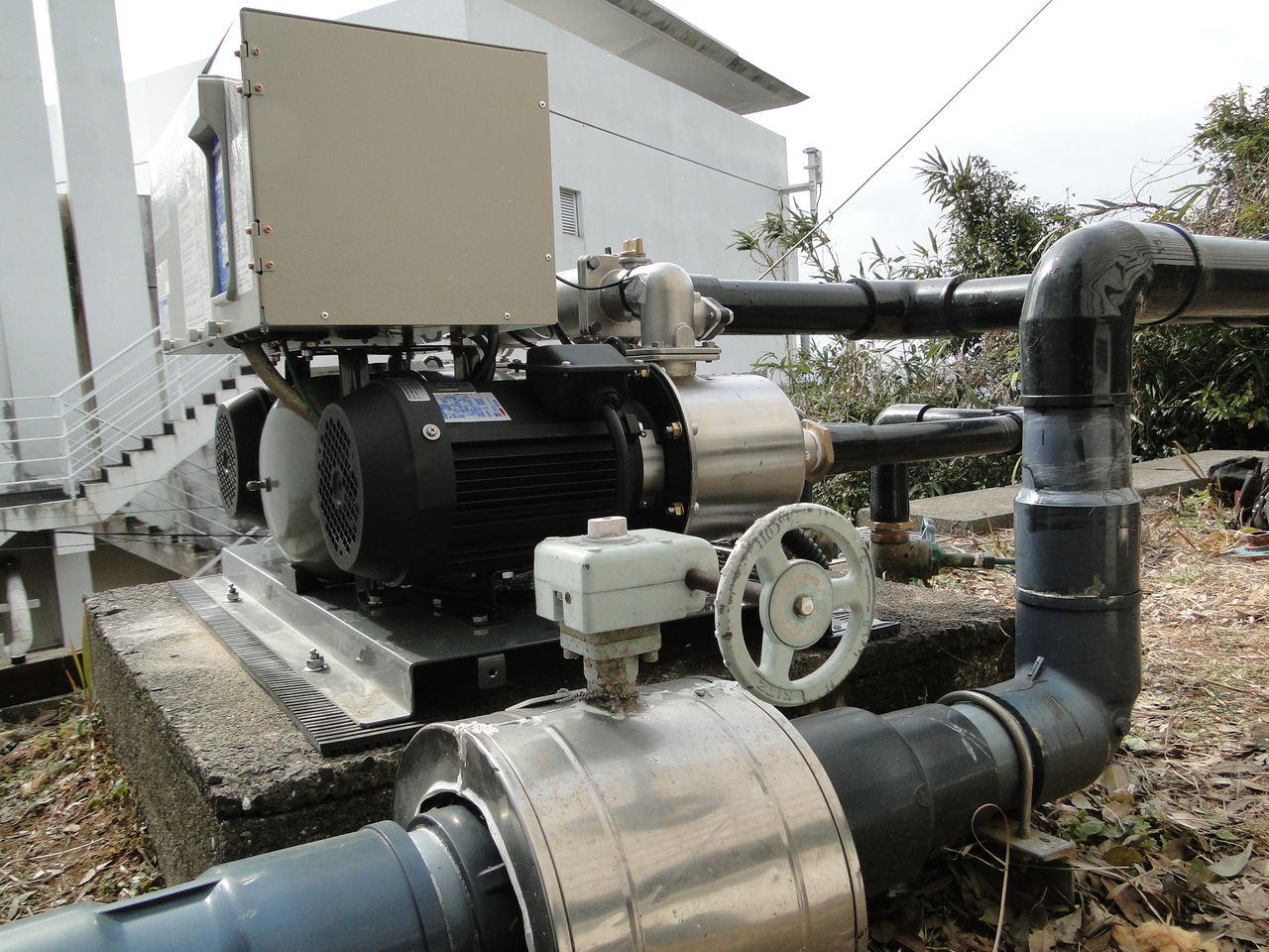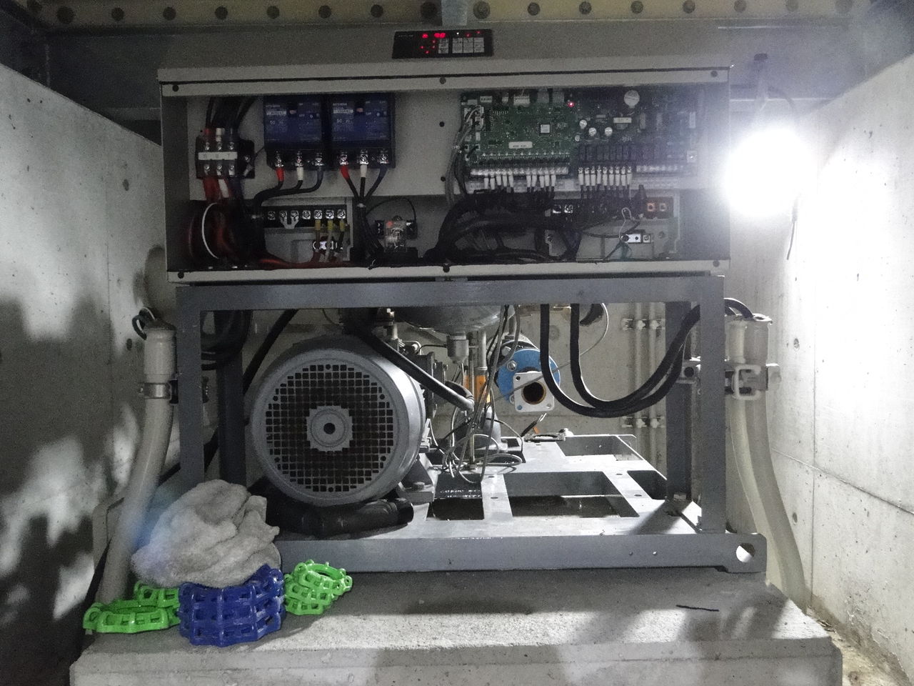 高知県高知市内の大規模マンションにて給水ユニットポンプの修理工事を行いました。