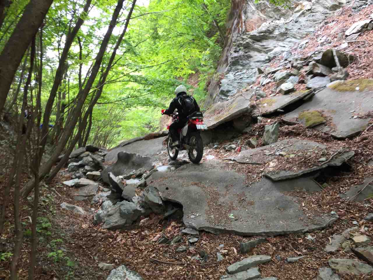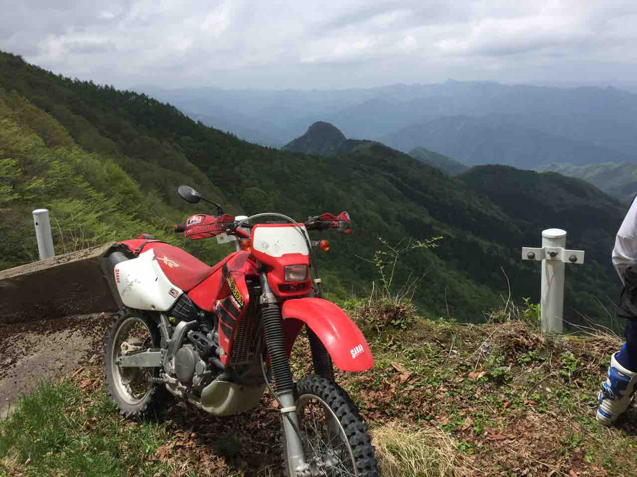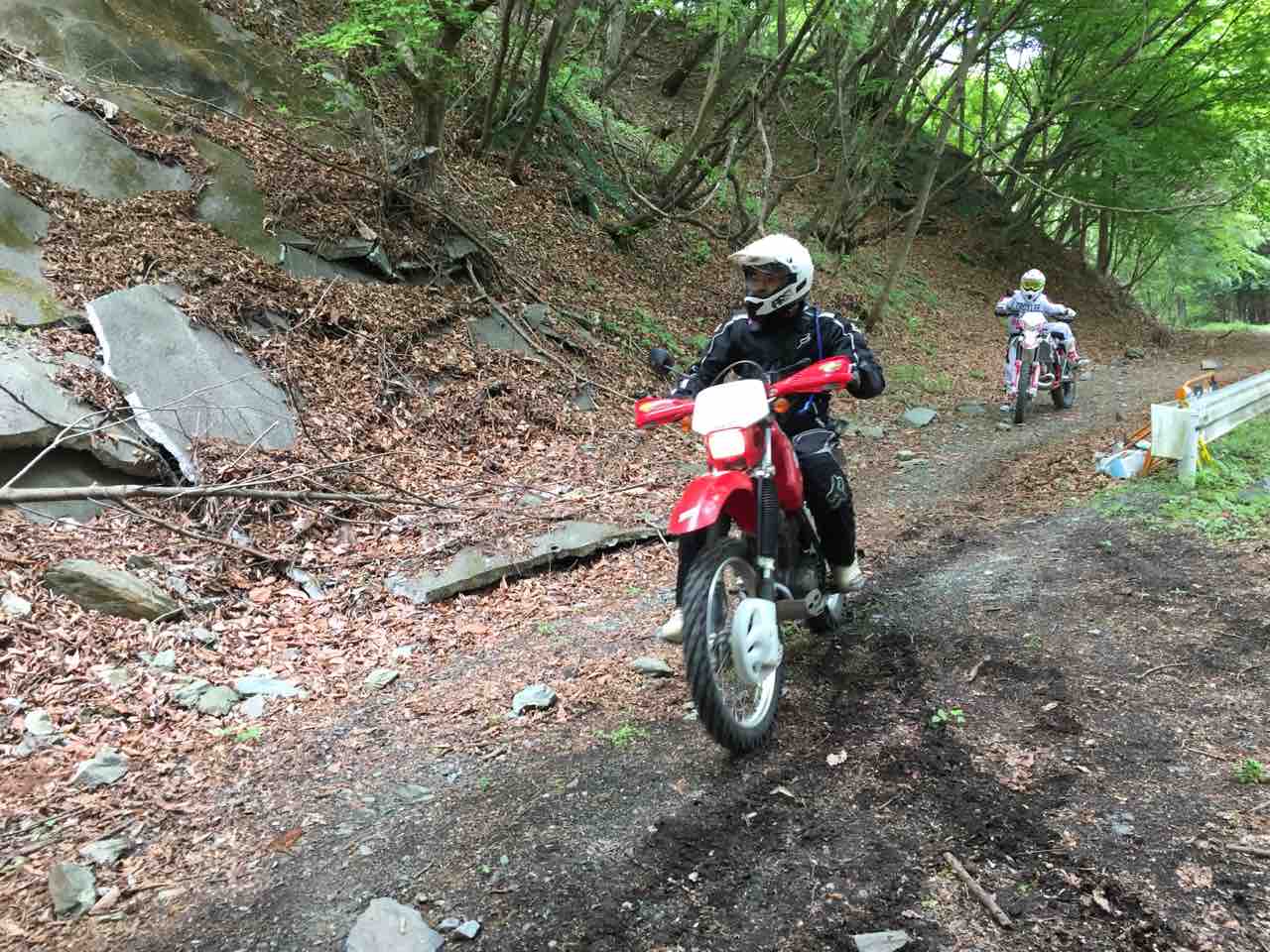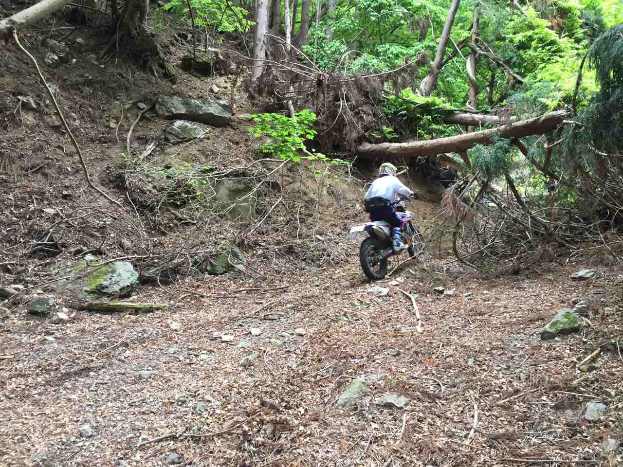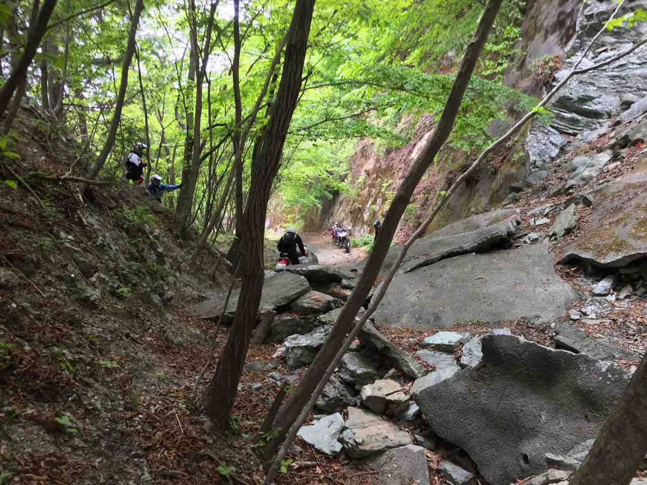 この後も緩いガレ場やのどかな山村や国道と手書きの看板が貼ってあるシングルトレール的な道? を走って心と身体の慣らしをしてまいりました。