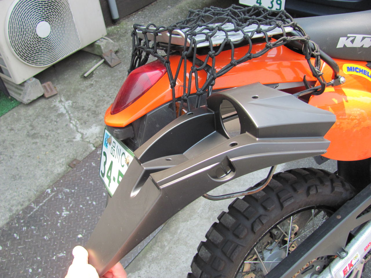 ところでマフラーもノーマルではなく、当時のパワーパーツかSXCの流用だそうで。 ノーマルはヤフオクで仕入れましたがデカくて重ーい! キャリアの上の天板はツラーテックです。