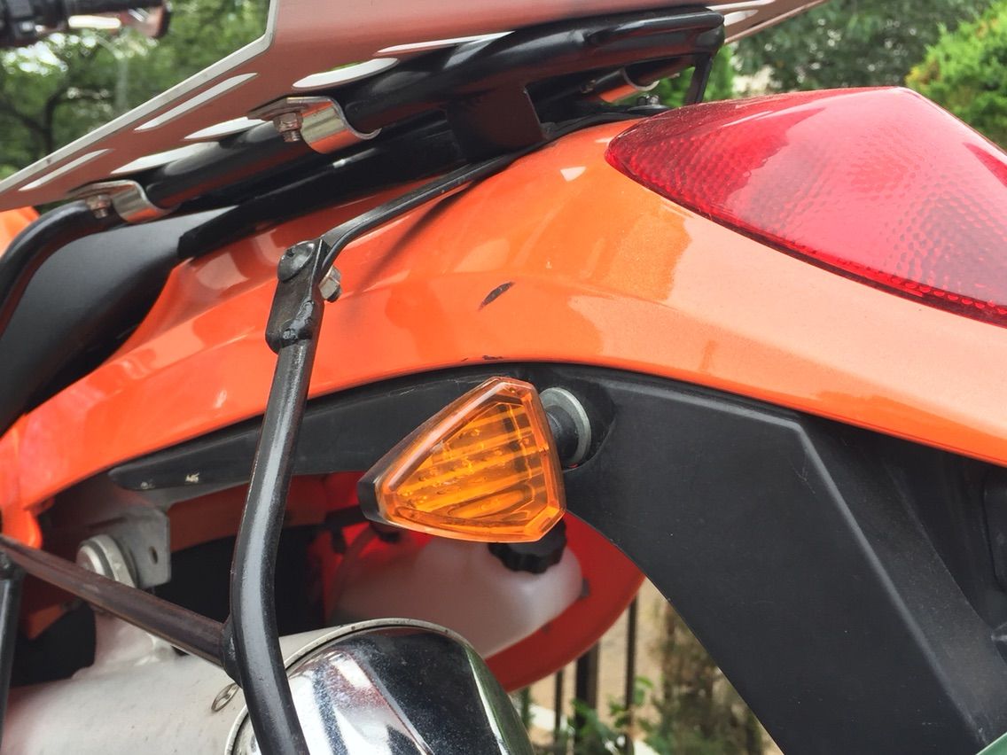 ウィンカーはDRC製のLEDタイプに(ノーマルは来て2週間後に自然にポッキリ折れました…)。テールランプもバルブだけLEDに換えました。 ところで余談ですがこのDRCのウィンカー、どうするか悩んでいた当時、既に使っていた2号に聞いてみたところ「ウィンカー自体がクルクル回り出すからあまり勧めない」と言われてましたが、大佐からは「そんなことないよ」と言われたので付けてみると うん!回らない! なるほど …2号のただの取り付けミスだったようです。