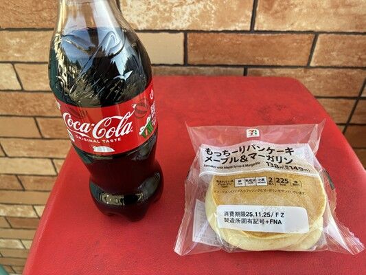 午後にコンビニではちみつパンとコーラ。