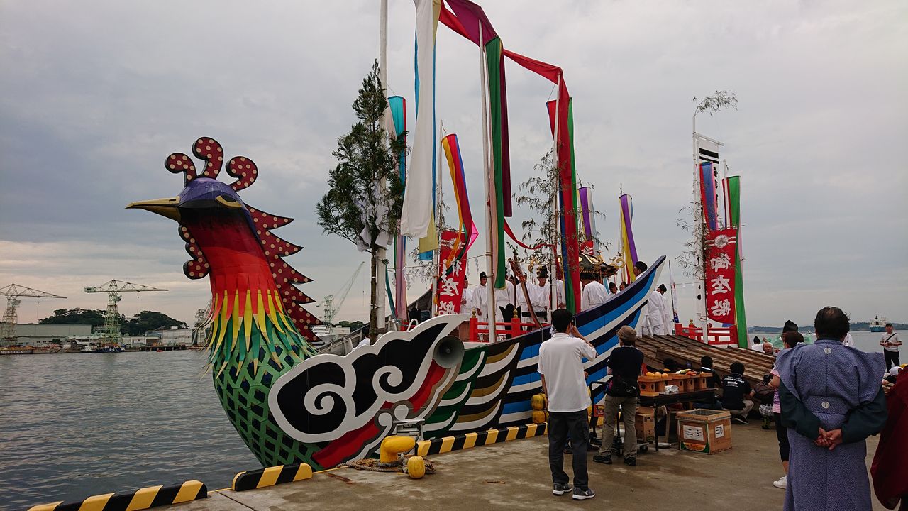 7月16日(海の日)は鹽竈と祭りでした。前日の花火大会もすごい靄ではな花火がほとんど見れず、観客はもとより、準備してきた関係者をがっかりさせましたが、祭り当日も予報では、炎天下でかなり気温も高くなると思われましたが、曇り空で突然雨が降ってきたりして、変な天気でした。それでも、湿度はかなり高く、汗だくになりながら歩きました。しかし、考えようによっては気温が高くて熱中症の危険性が高くなるよりはよかったのかなと思います。これも鹽竈様、志和彦様のお計らいか。