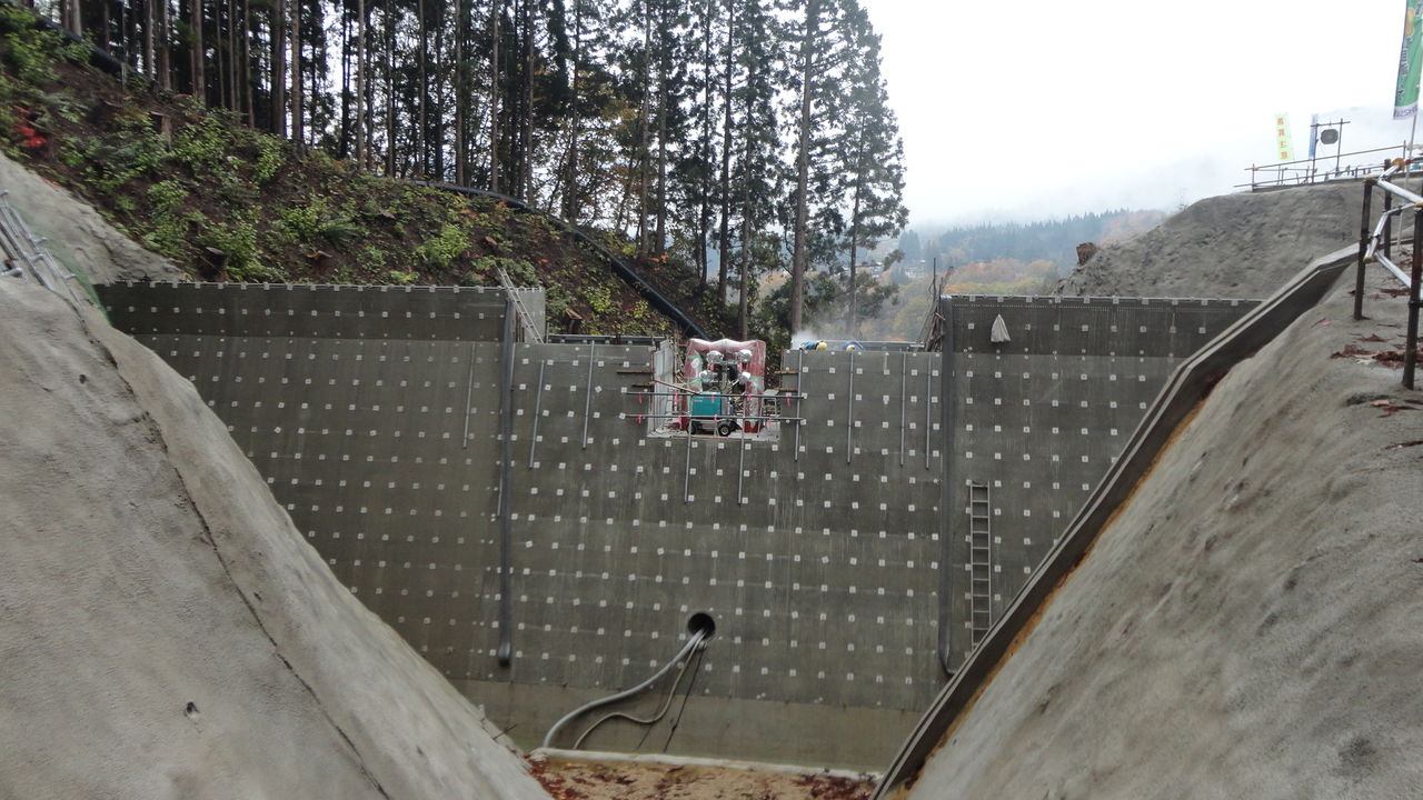 えん堤工事現場。
