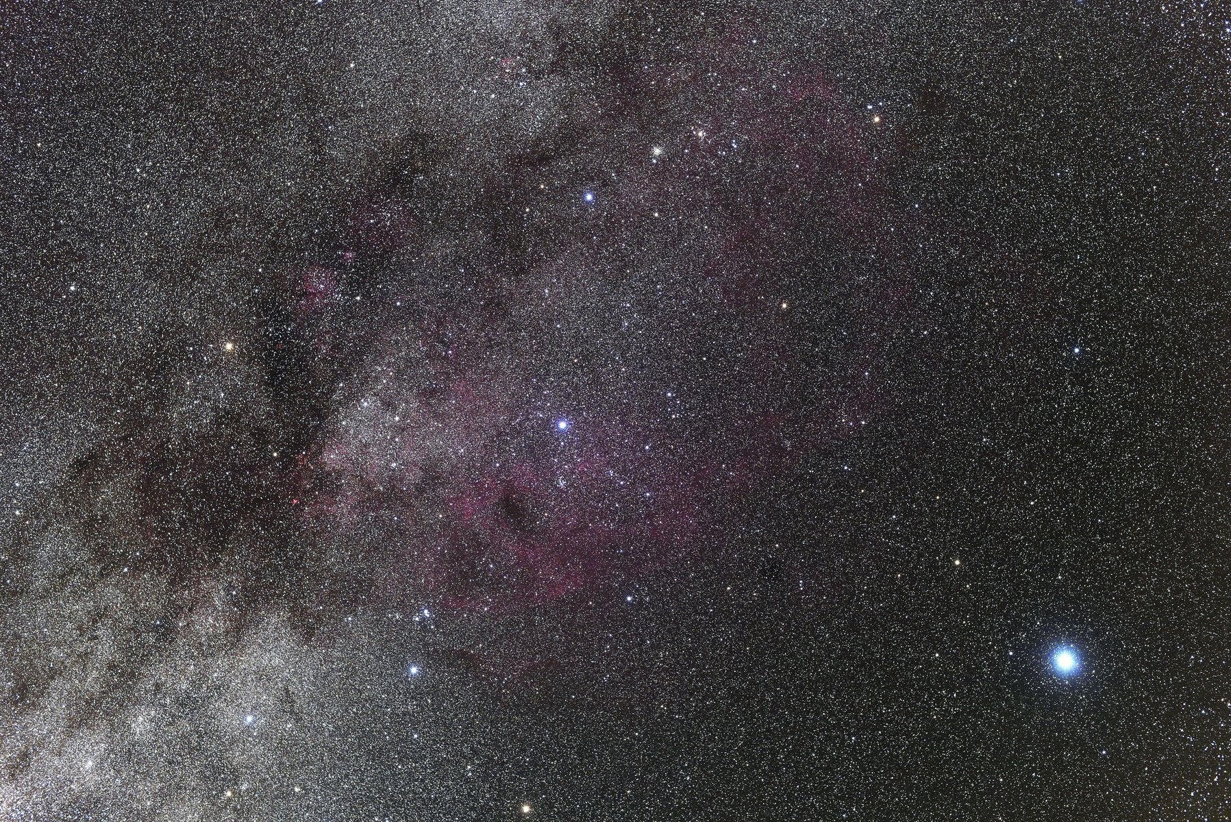 <ガム星雲:これで半分です。とらえどころがない大きさ 右の輝星はカノープスです。