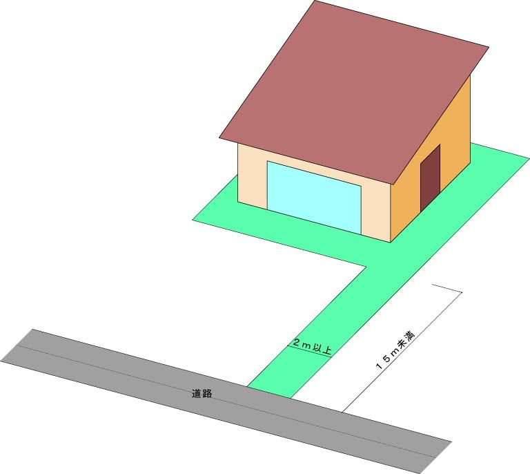 路地状部分の長さが15m未満の場合は2m以上の幅が必要です。
