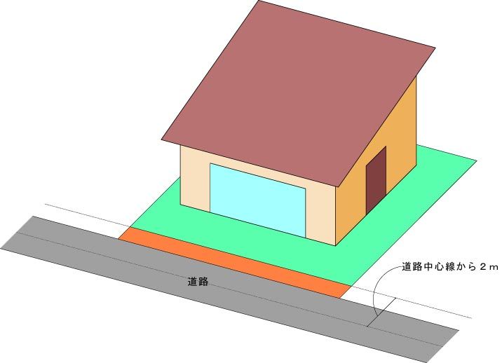その場合は、道路中心から2mまでの部分を道路とみなし、敷地をセットバックさせなければならない。
