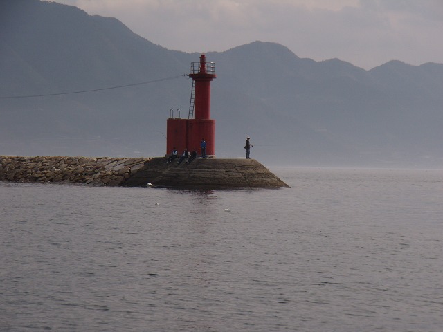 豊浜の赤灯台では早くもエギンガーがシャクってます