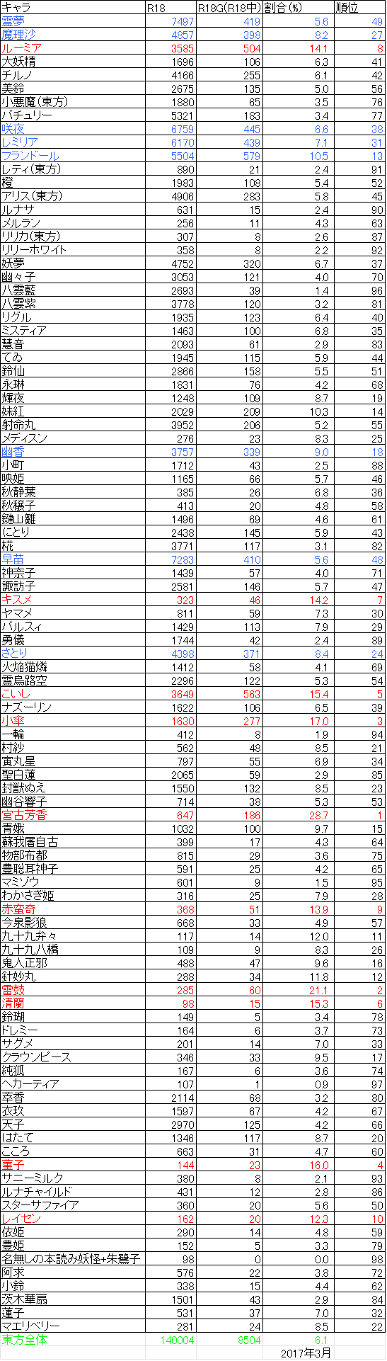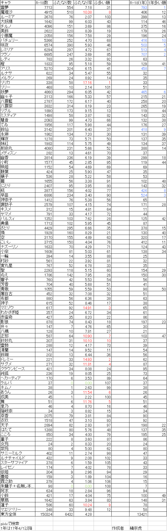 >5・6年ぐらい前はR-18率が10%超のキャラってレアだったんだよな