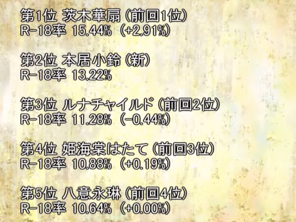 5・6年ぐらい前はR-18率が10%超のキャラってレアだったんだよな