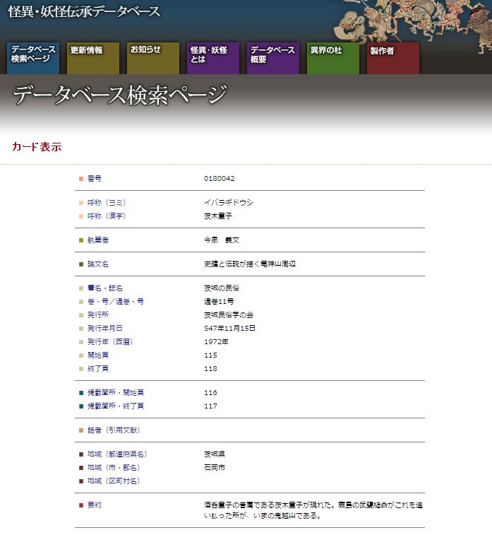 >妖怪データベースだと茨城県石岡市みたいだね