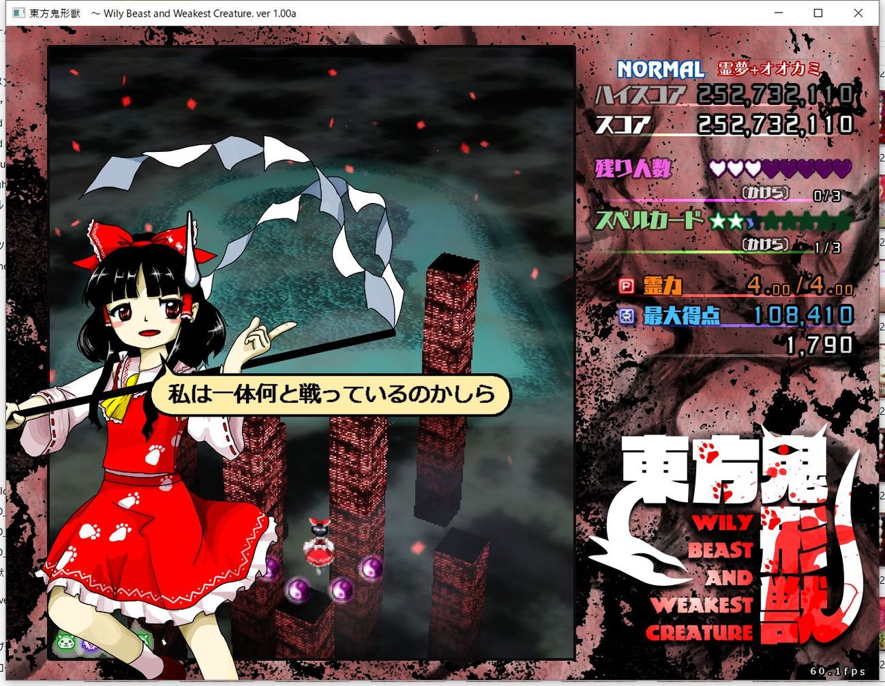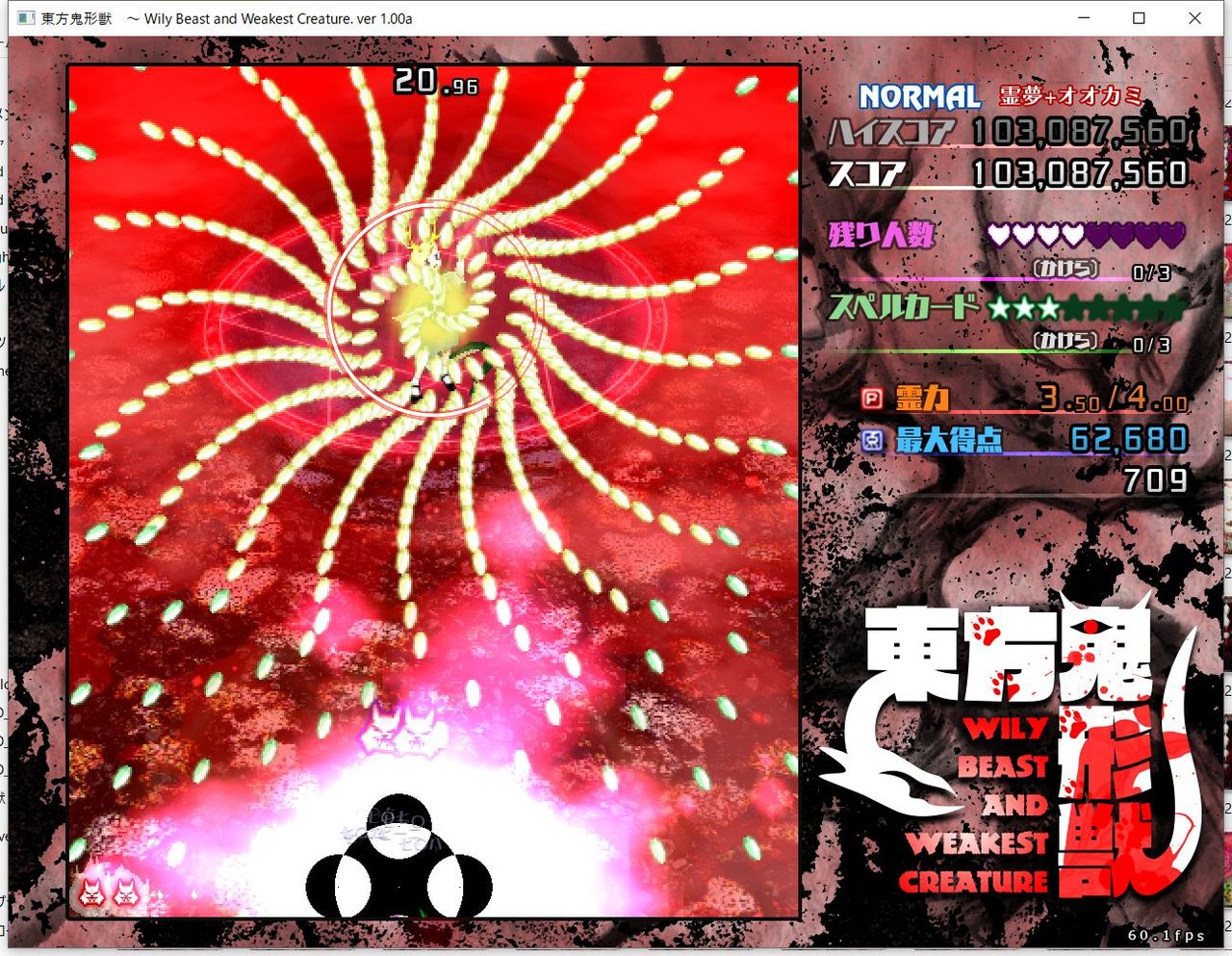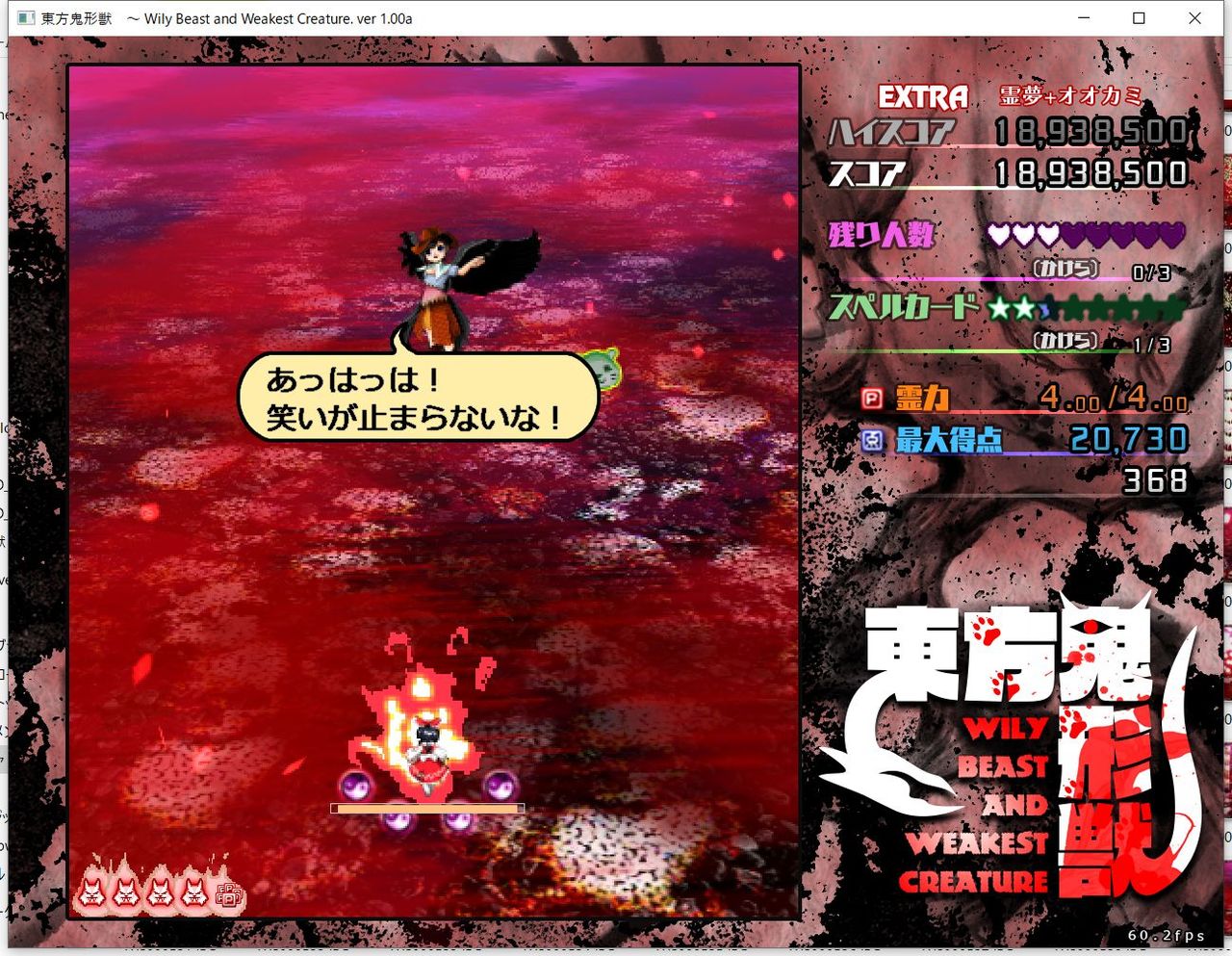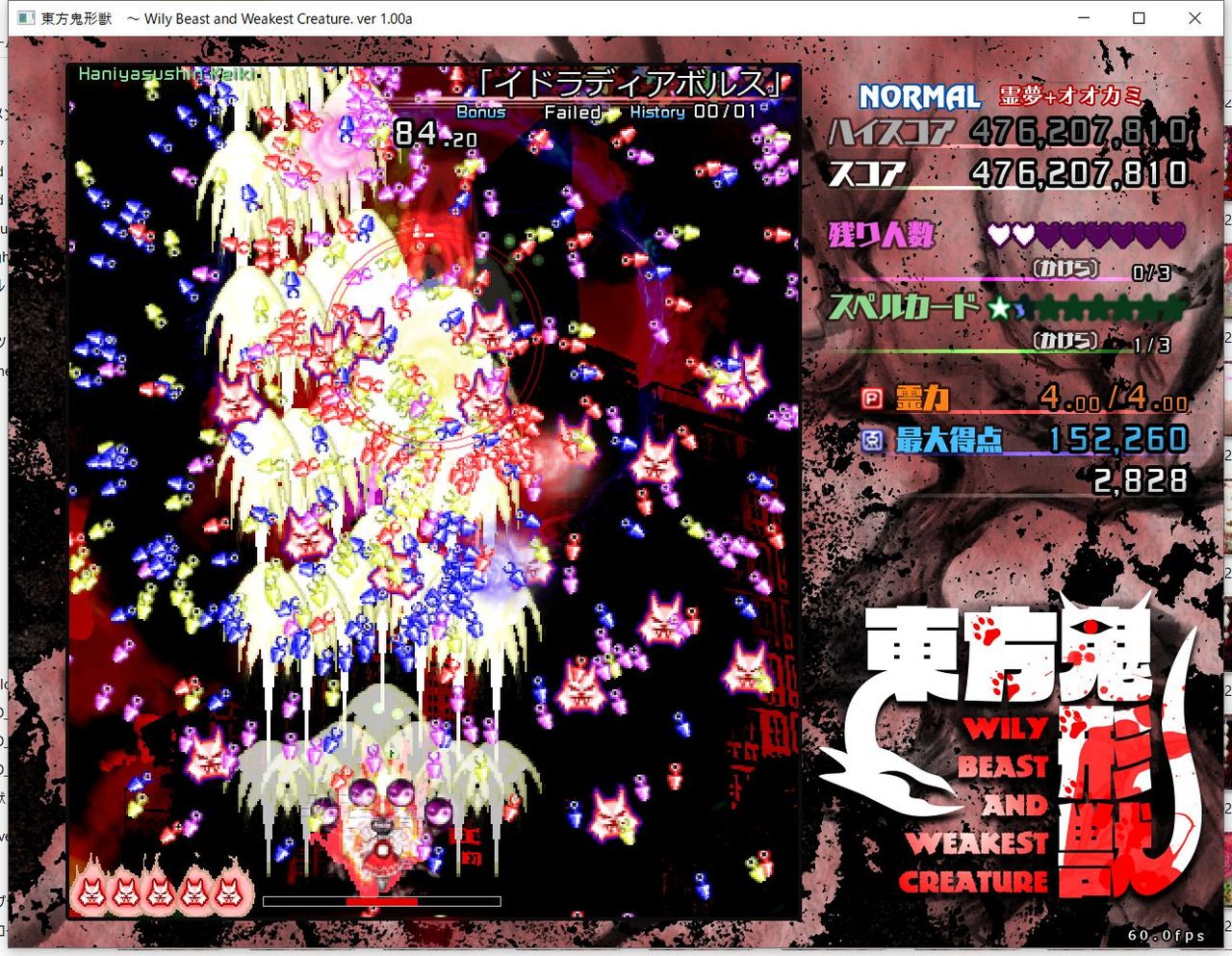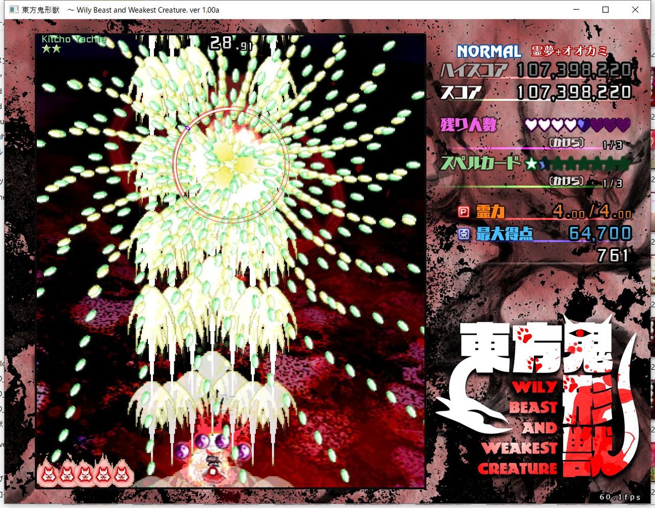 ・4面ボスの一つ目のスペルカードで、ボムを使ってトドメを刺すと稀にアプリが落ちる
