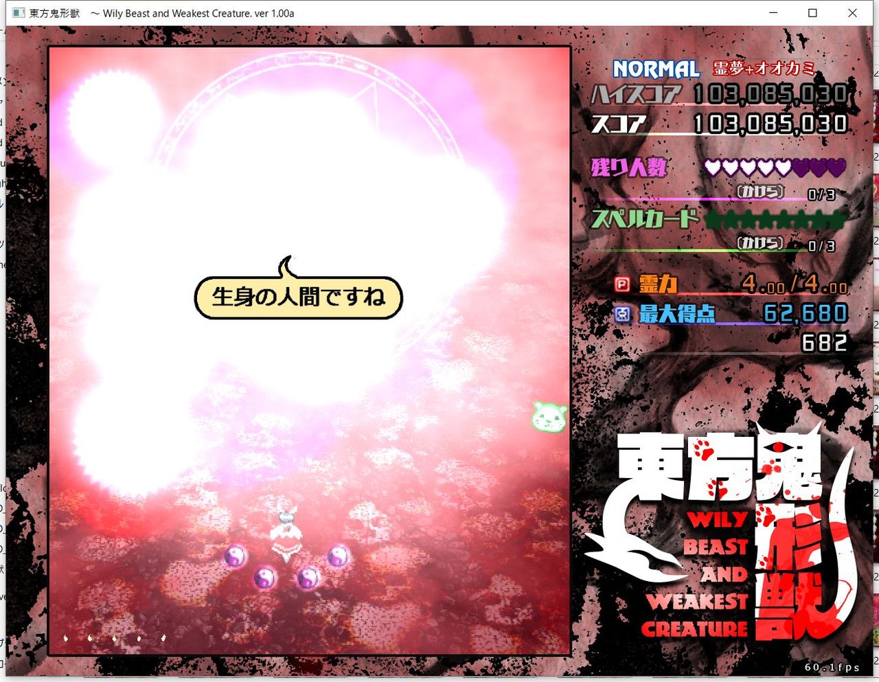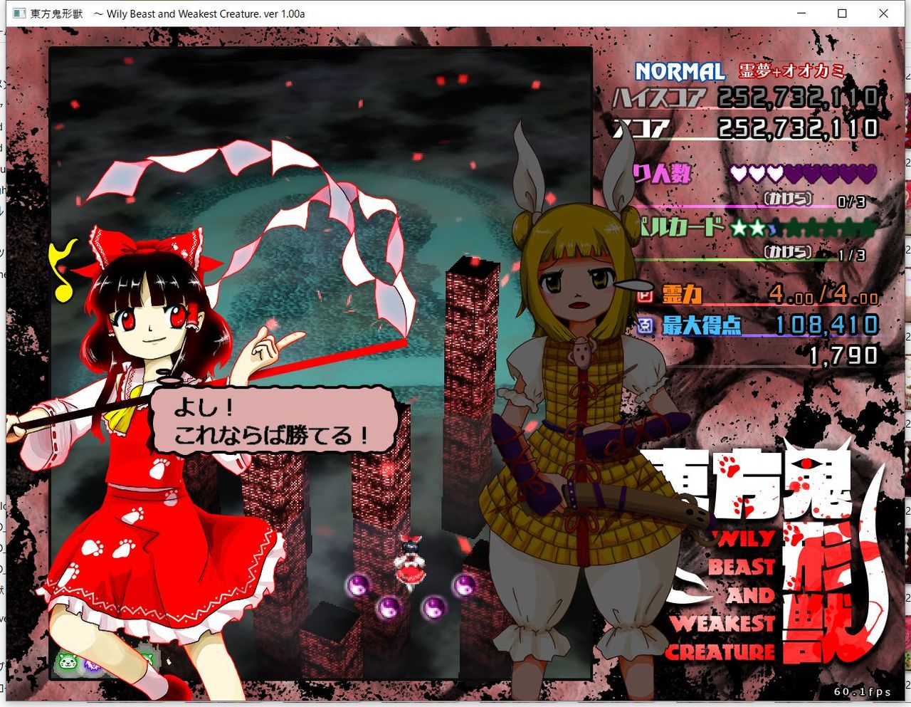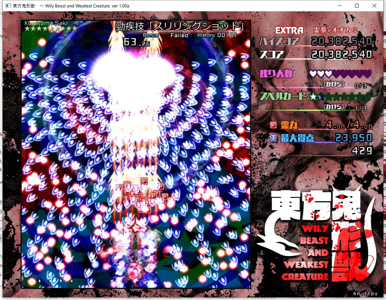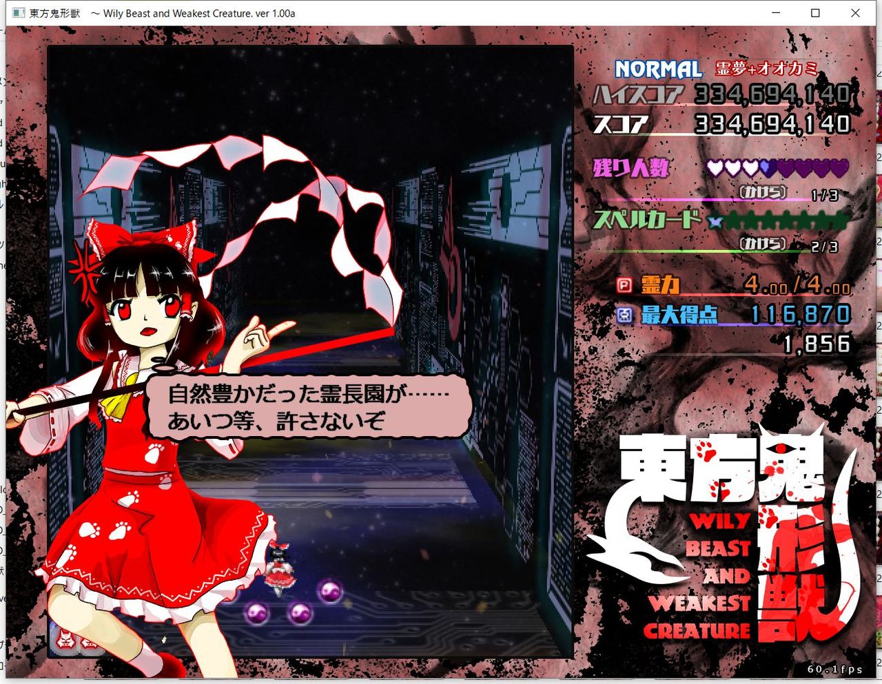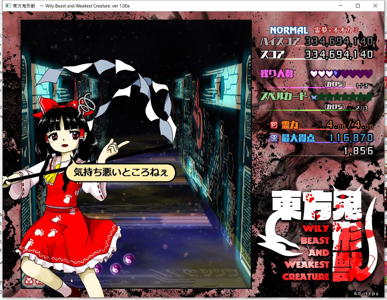 ・4面ボスの一つ目のスペルカードで、ボムを使ってトドメを刺すと稀にアプリが落ちる