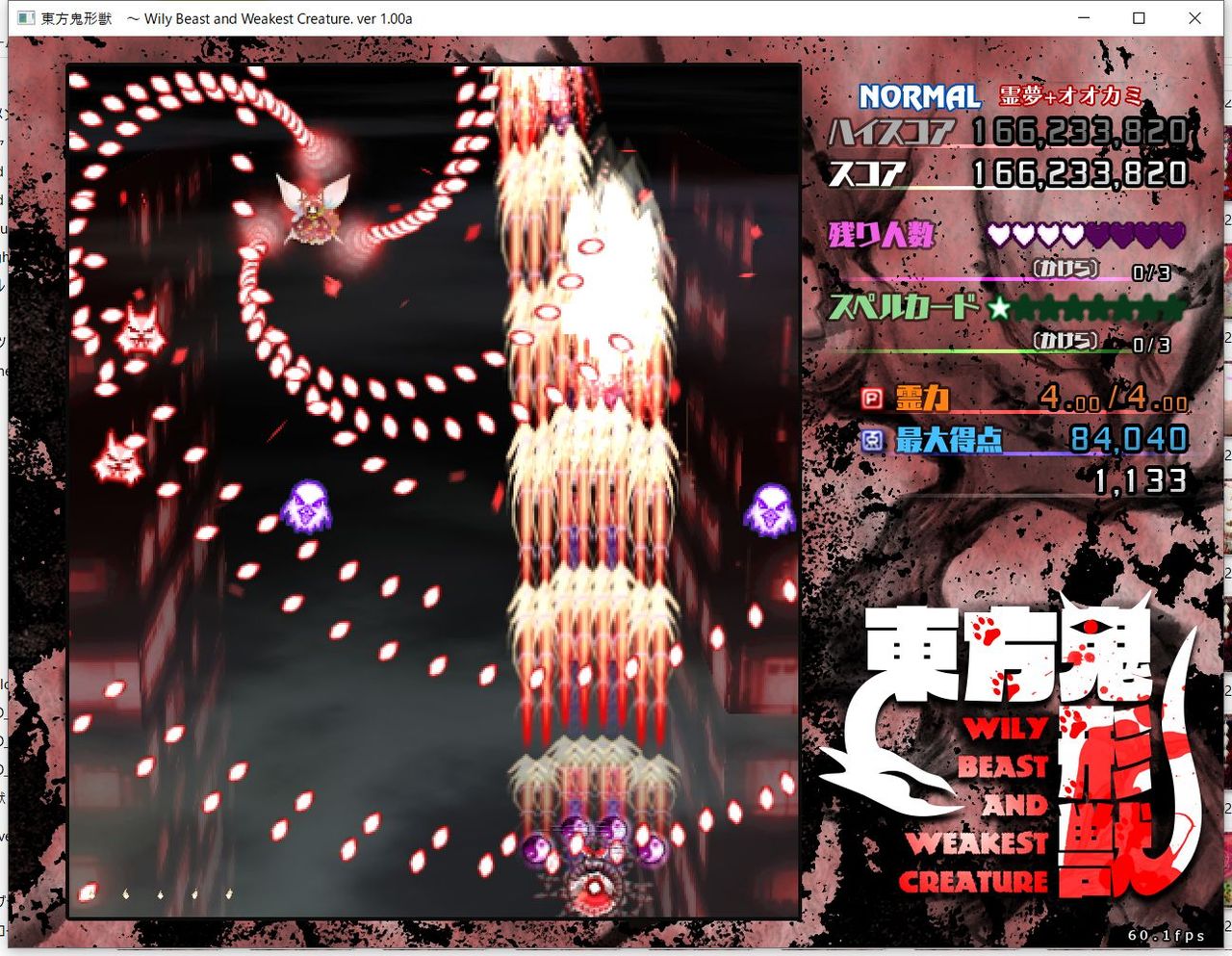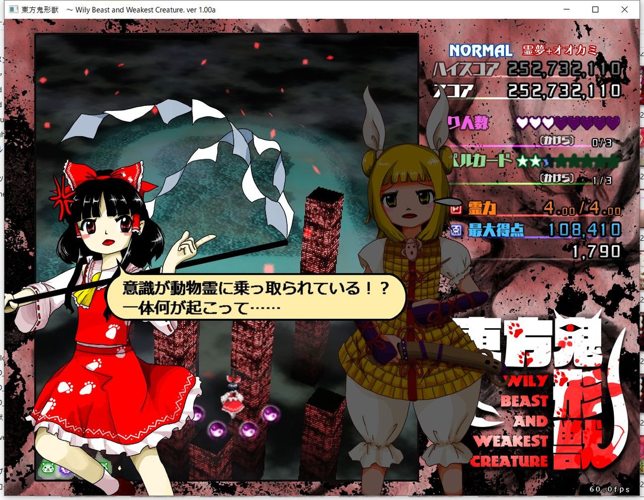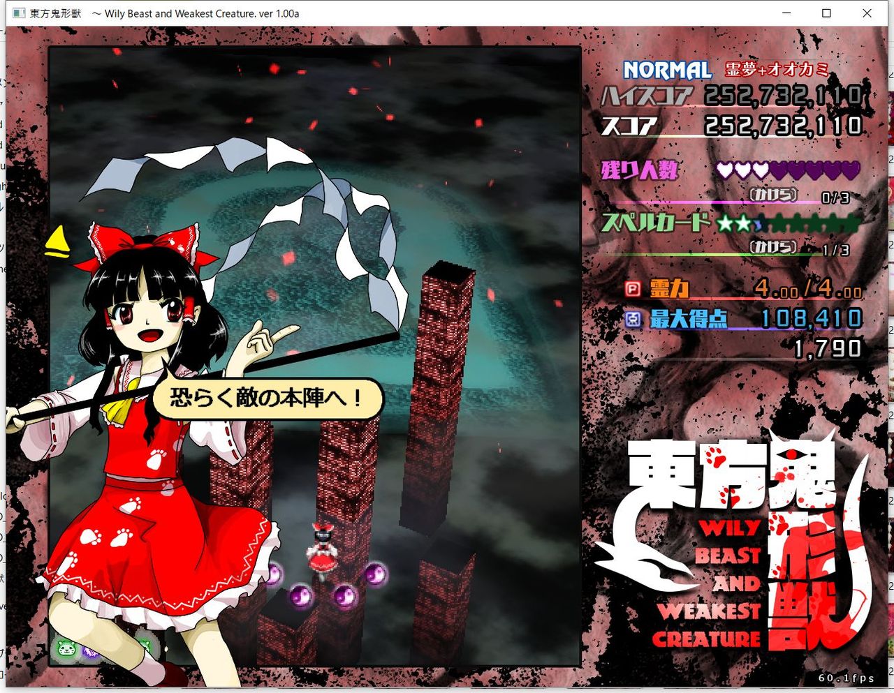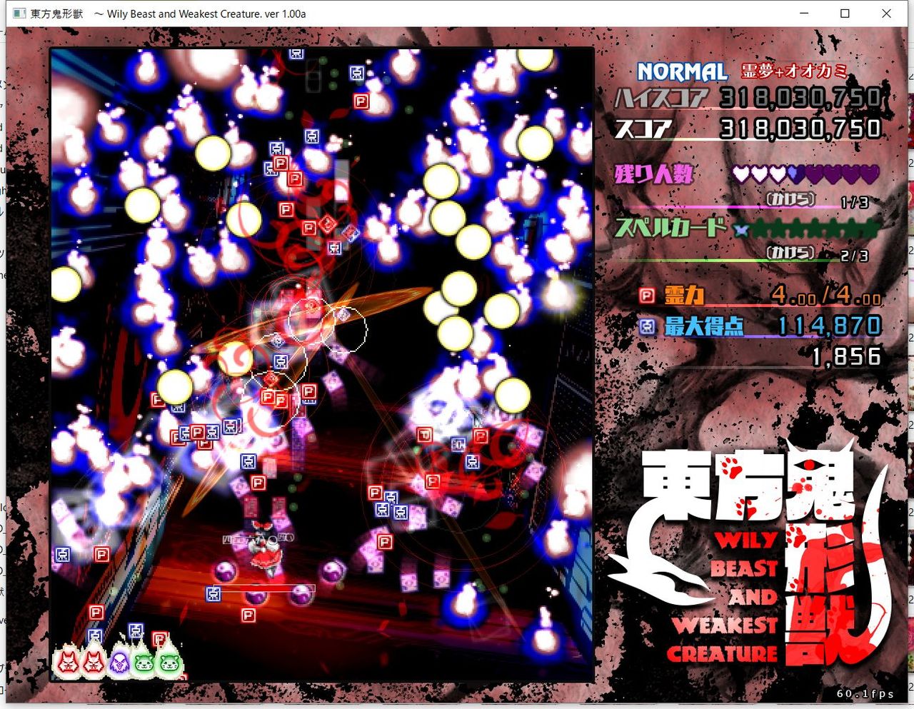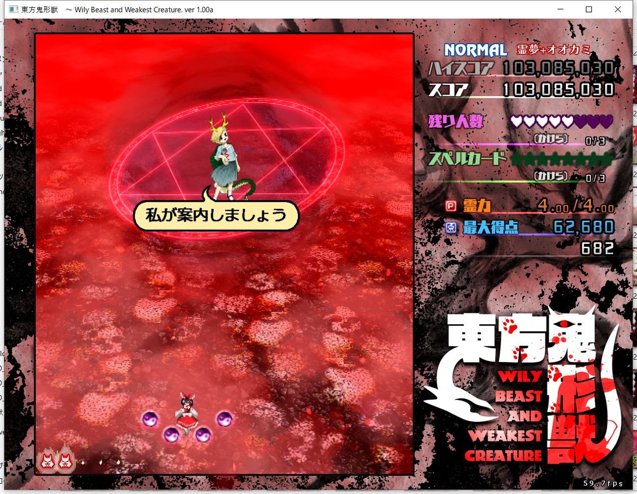 ・4面ボスの一つ目のスペルカードで、ボムを使ってトドメを刺すと稀にアプリが落ちる