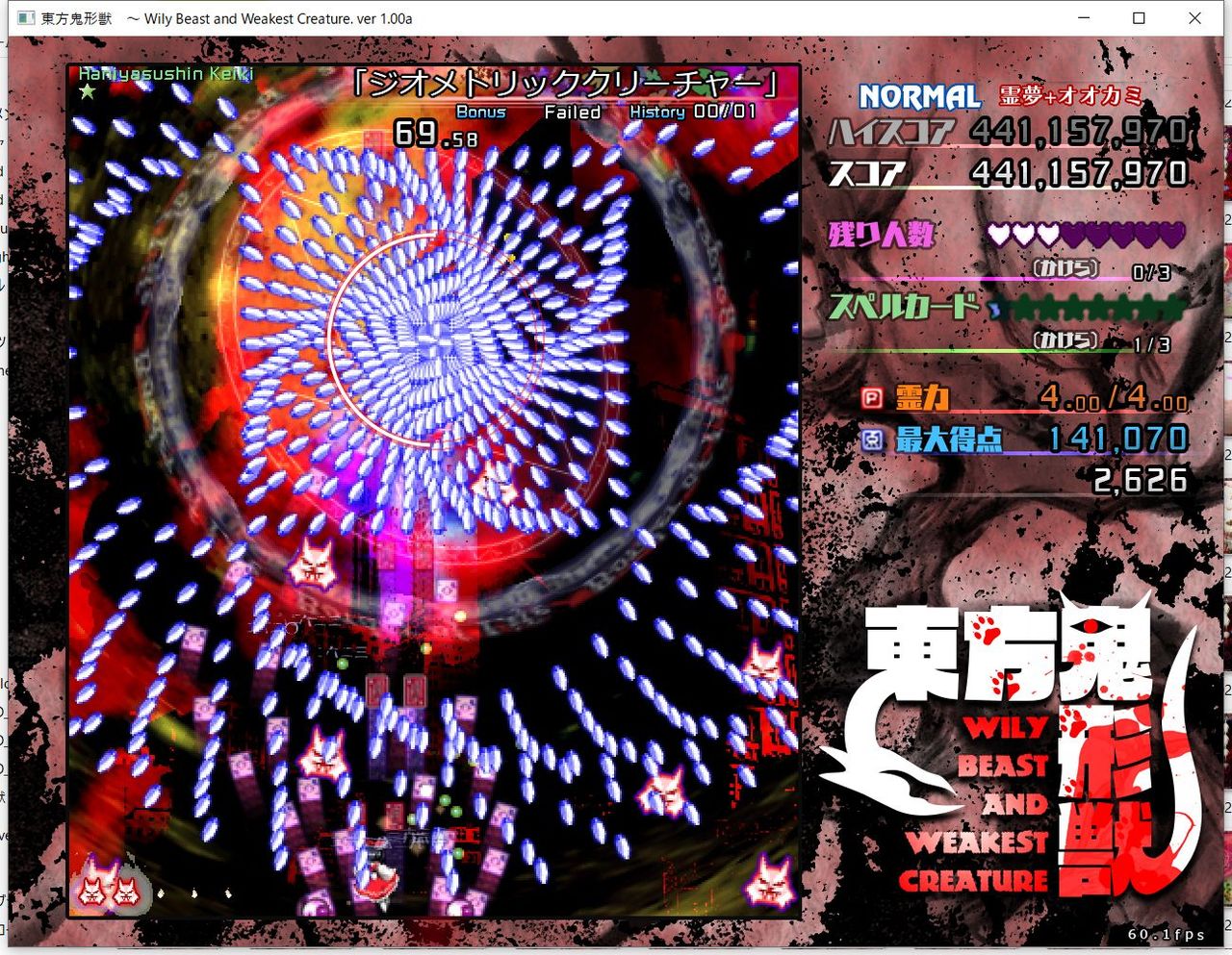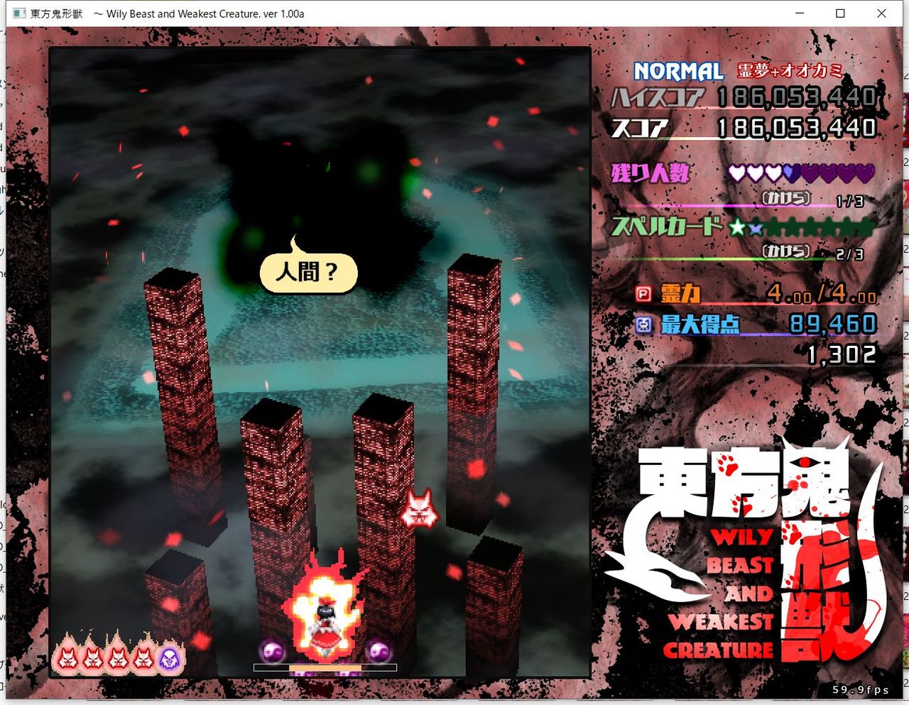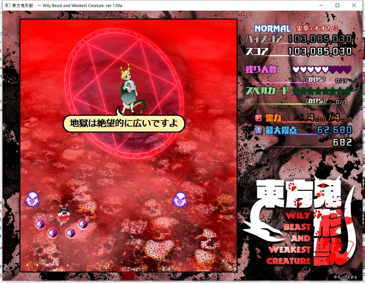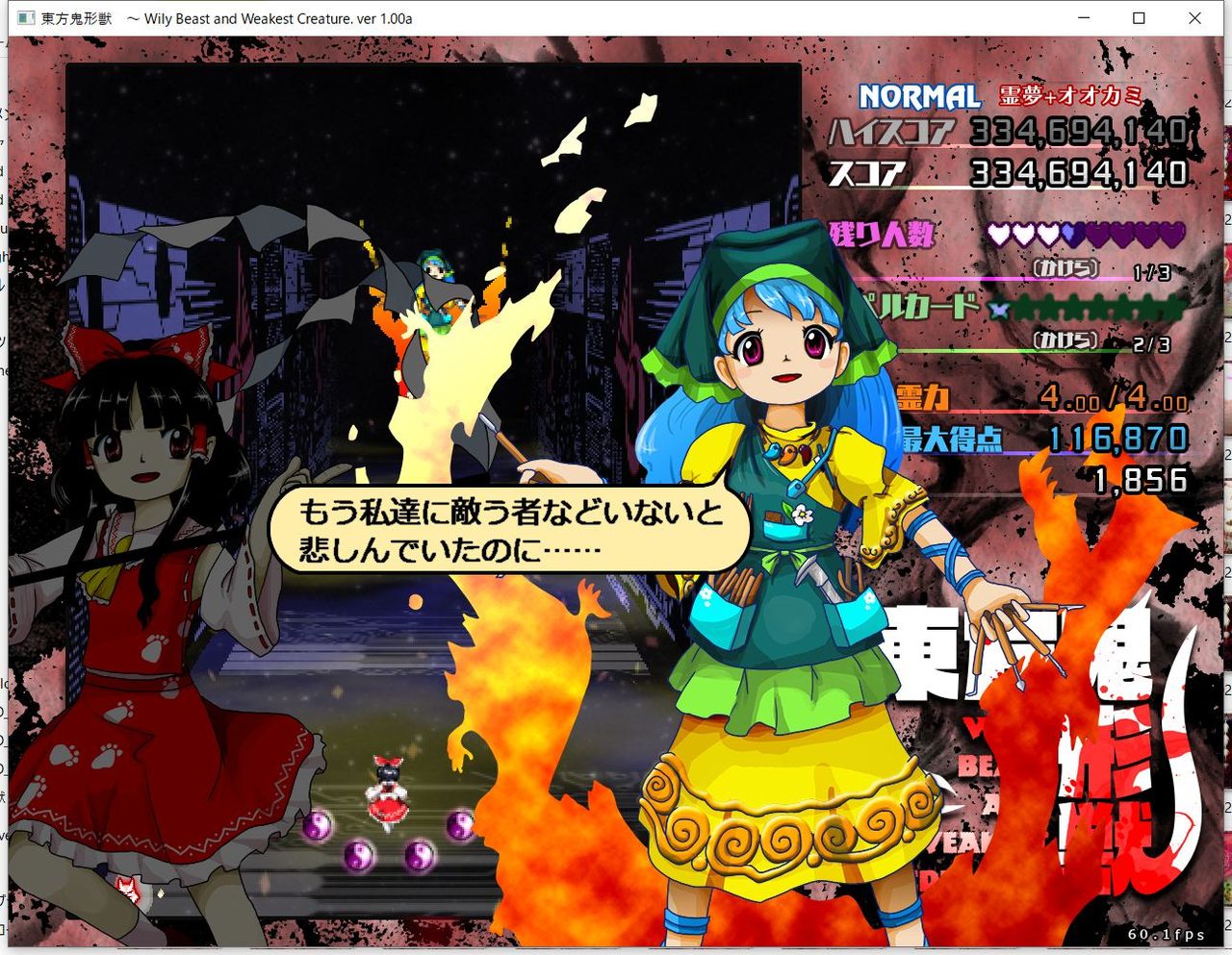 ・4面ボスの一つ目のスペルカードで、ボムを使ってトドメを刺すと稀にアプリが落ちる