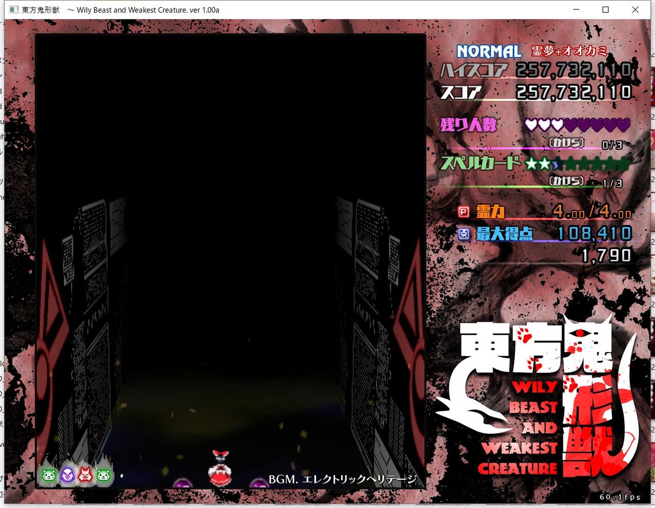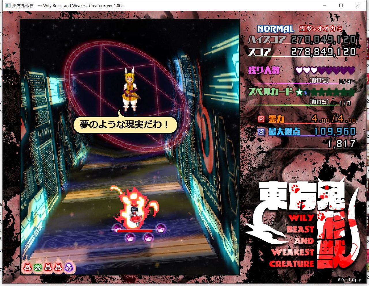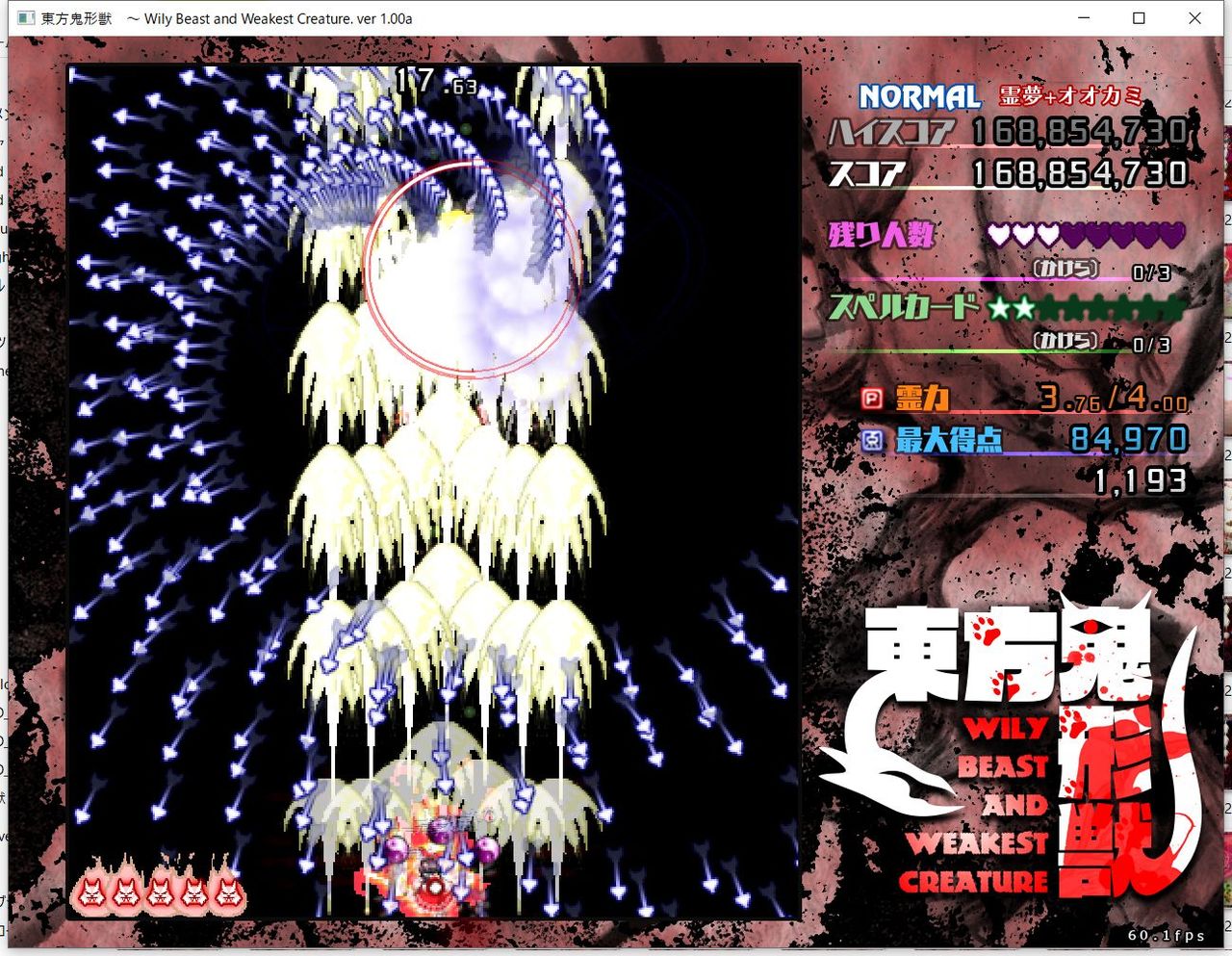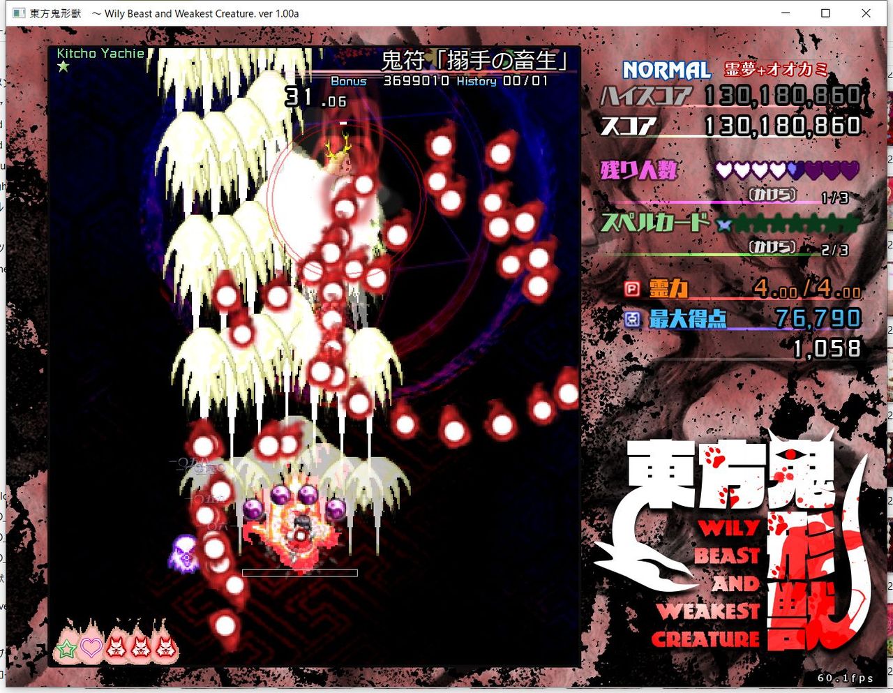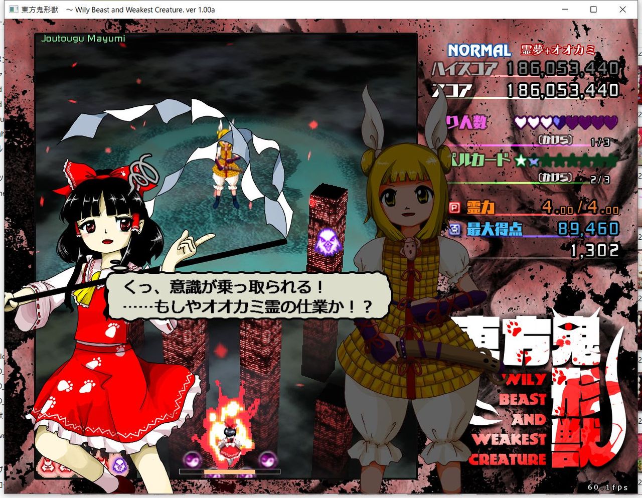 ・4面ボスの一つ目のスペルカードで、ボムを使ってトドメを刺すと稀にアプリが落ちる