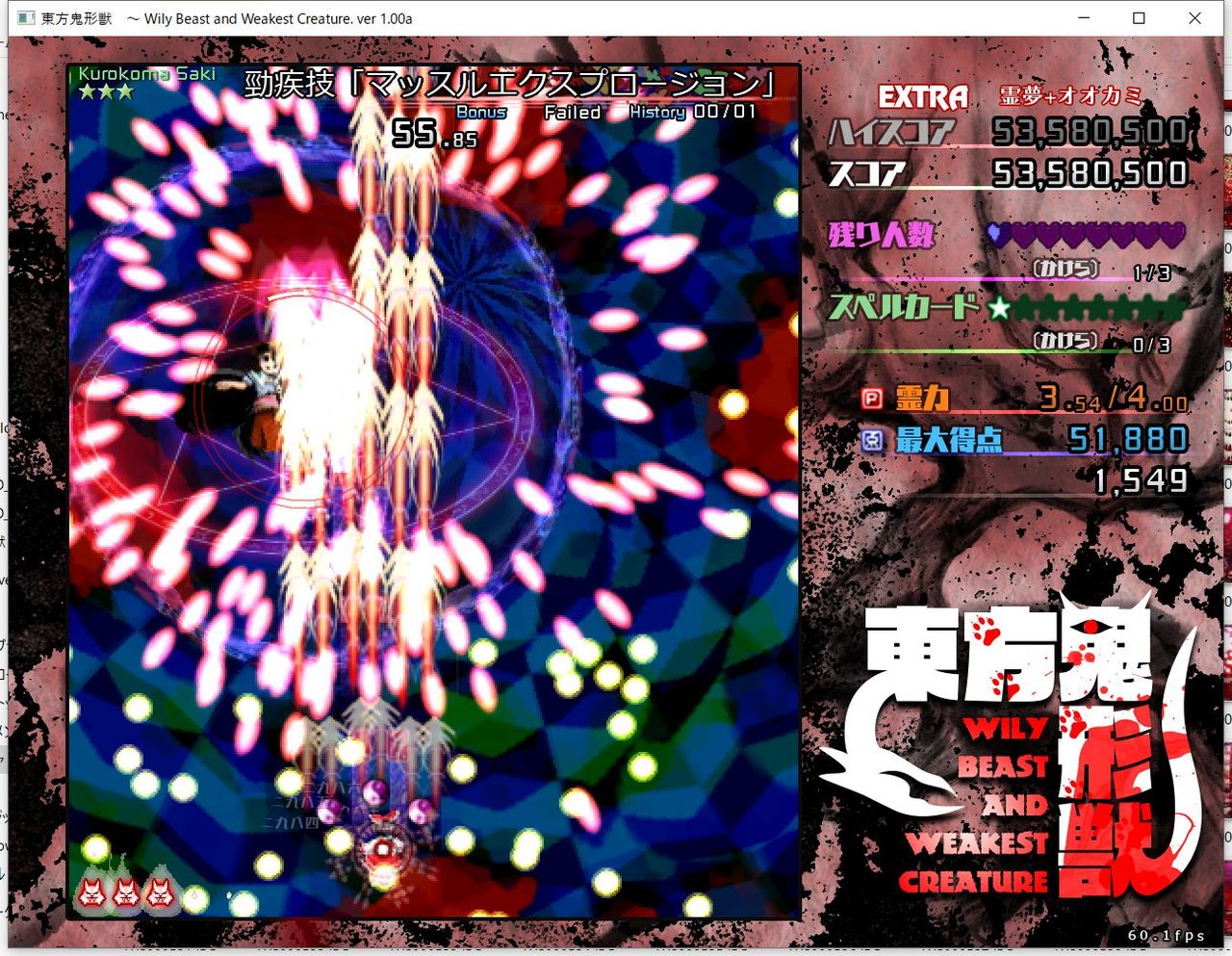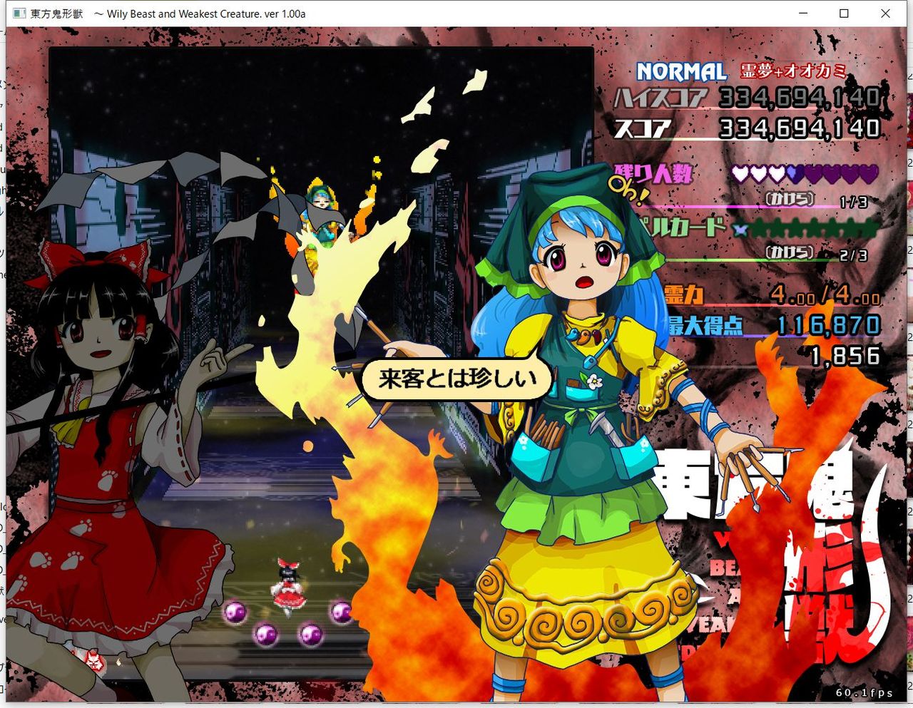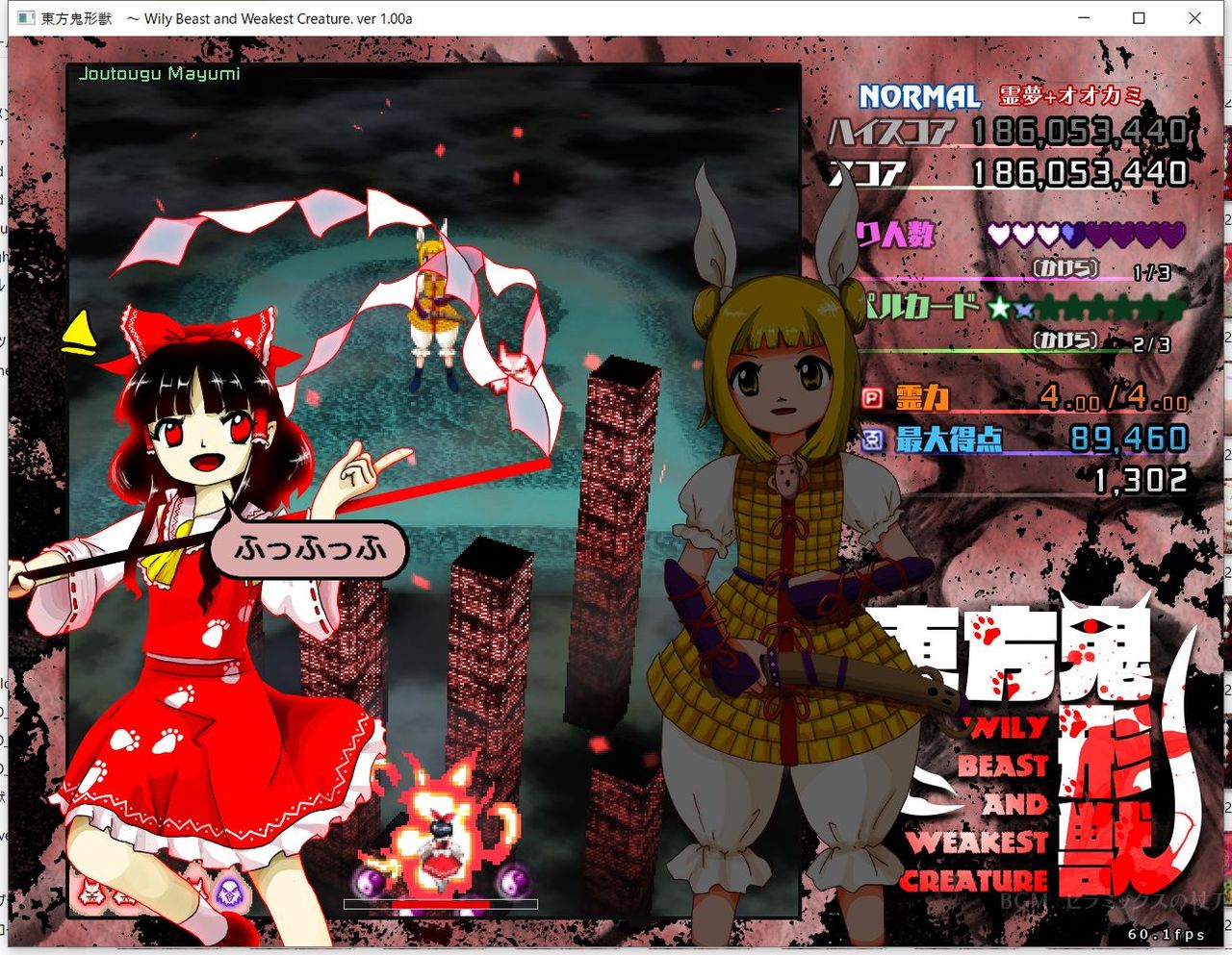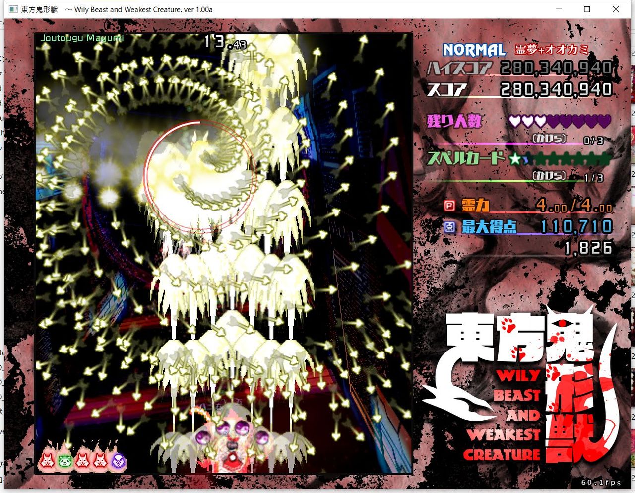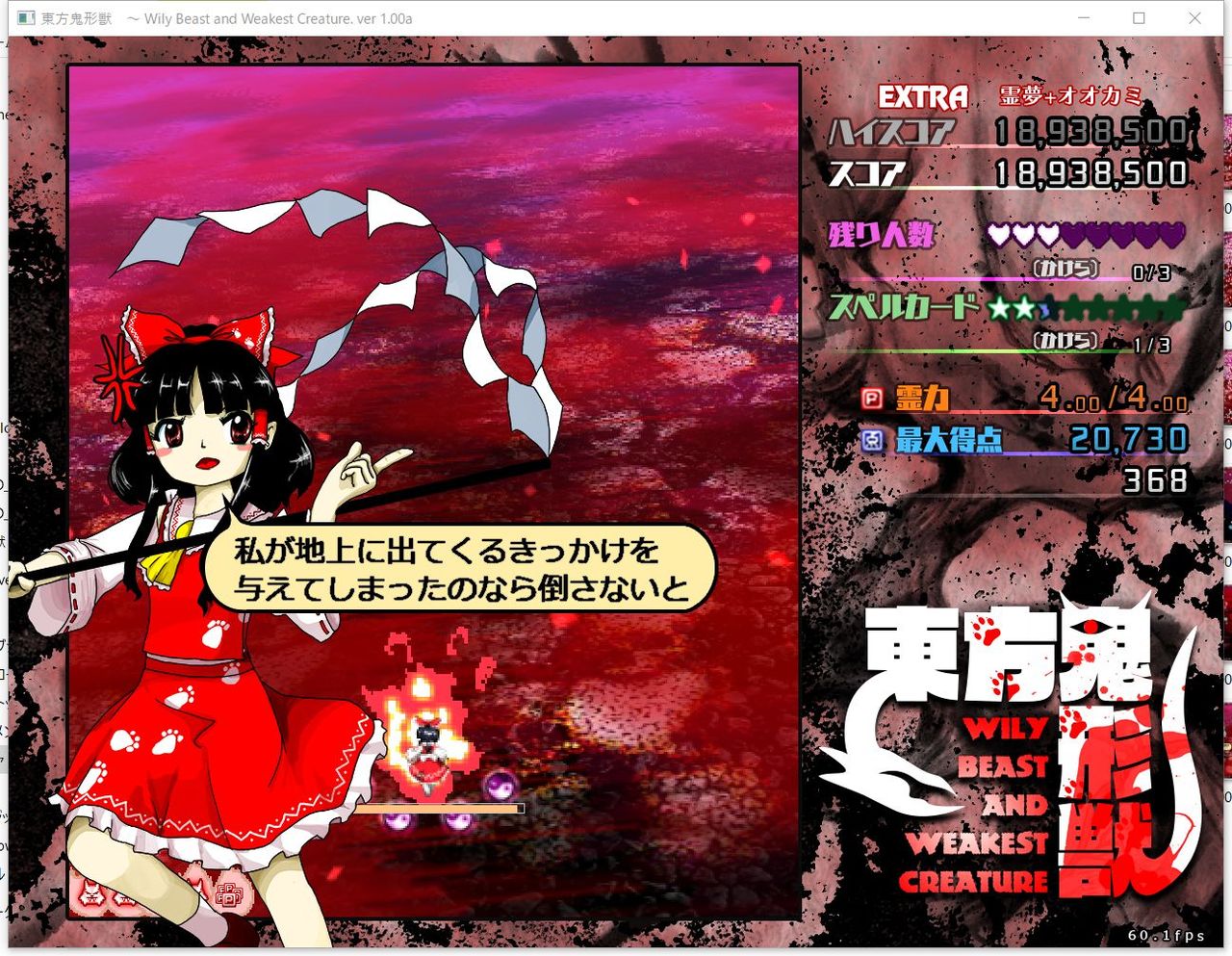 ・4面ボスの一つ目のスペルカードで、ボムを使ってトドメを刺すと稀にアプリが落ちる