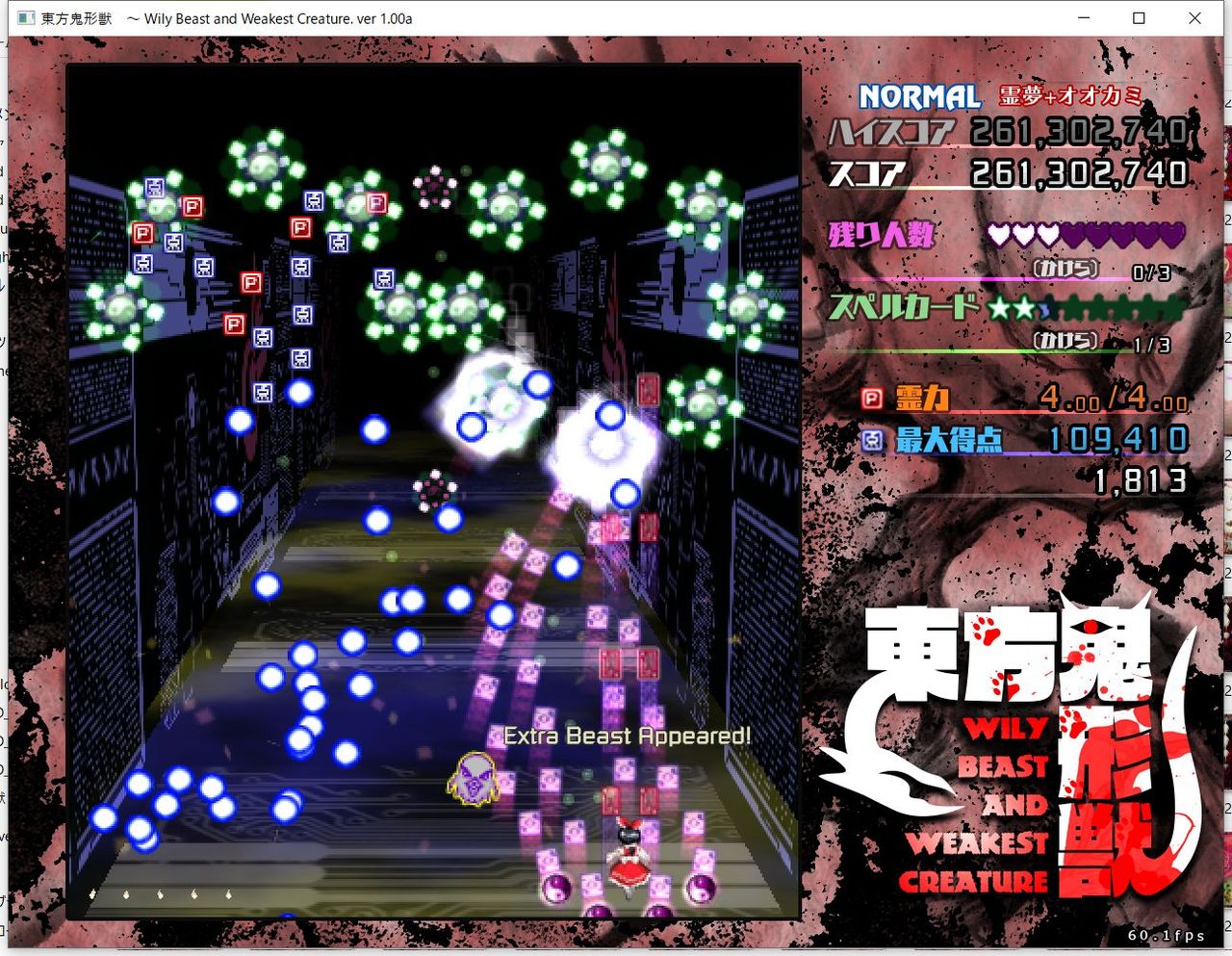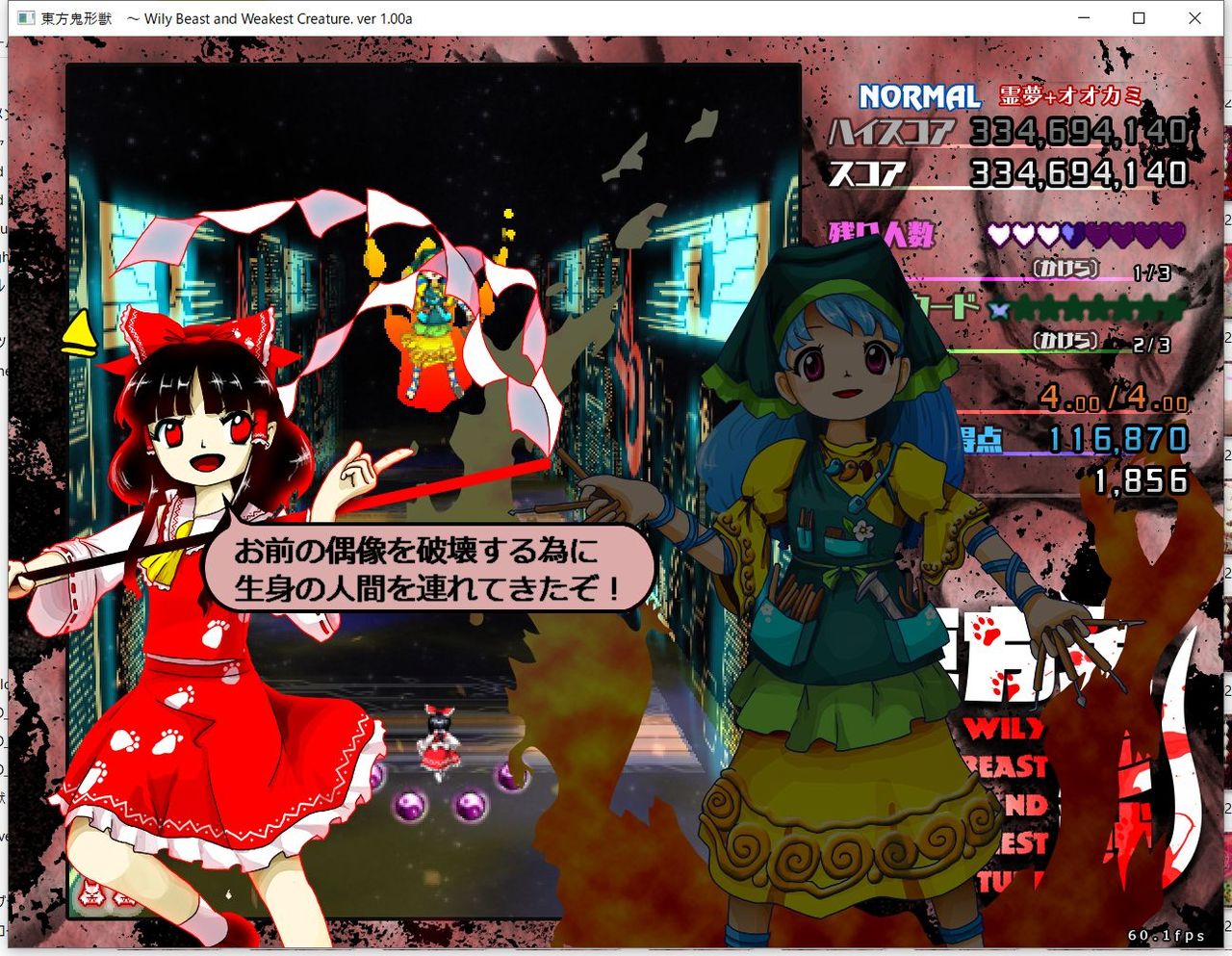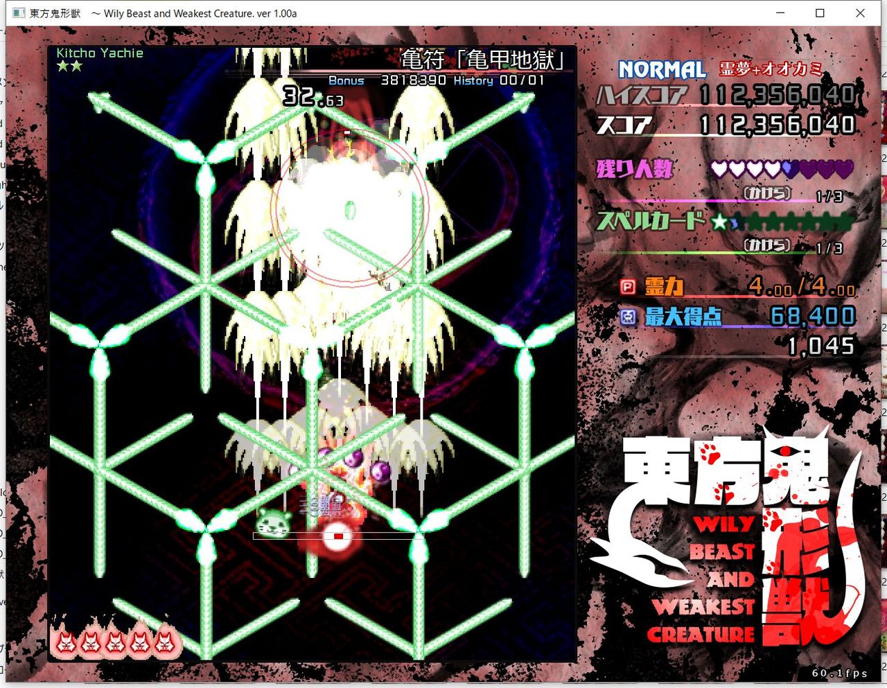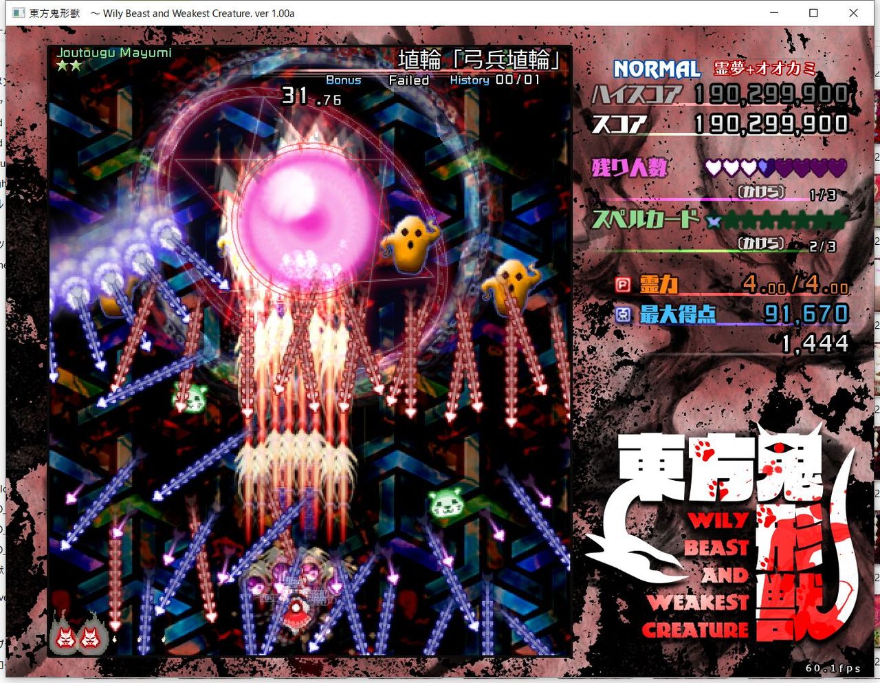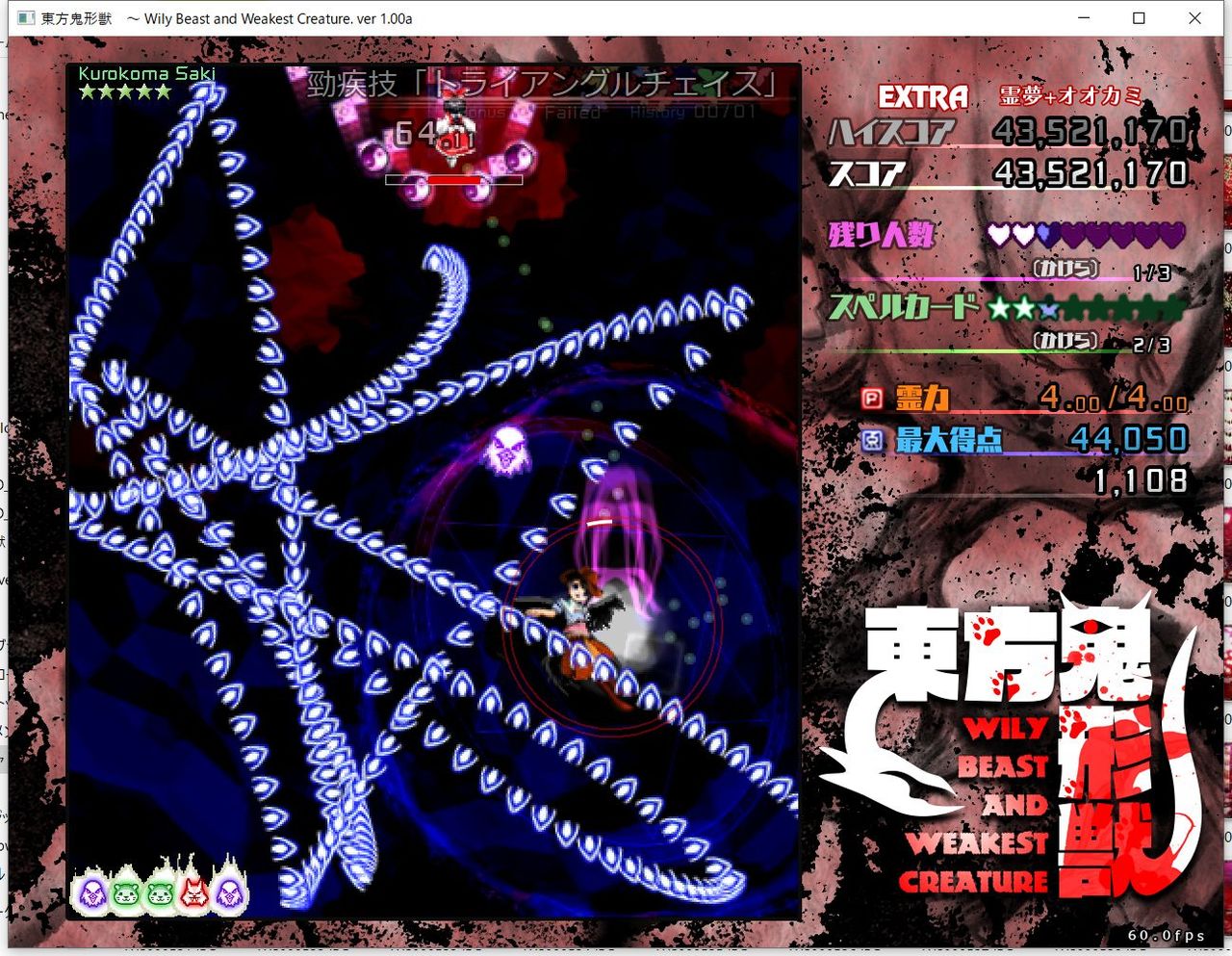 ・4面ボスの一つ目のスペルカードで、ボムを使ってトドメを刺すと稀にアプリが落ちる