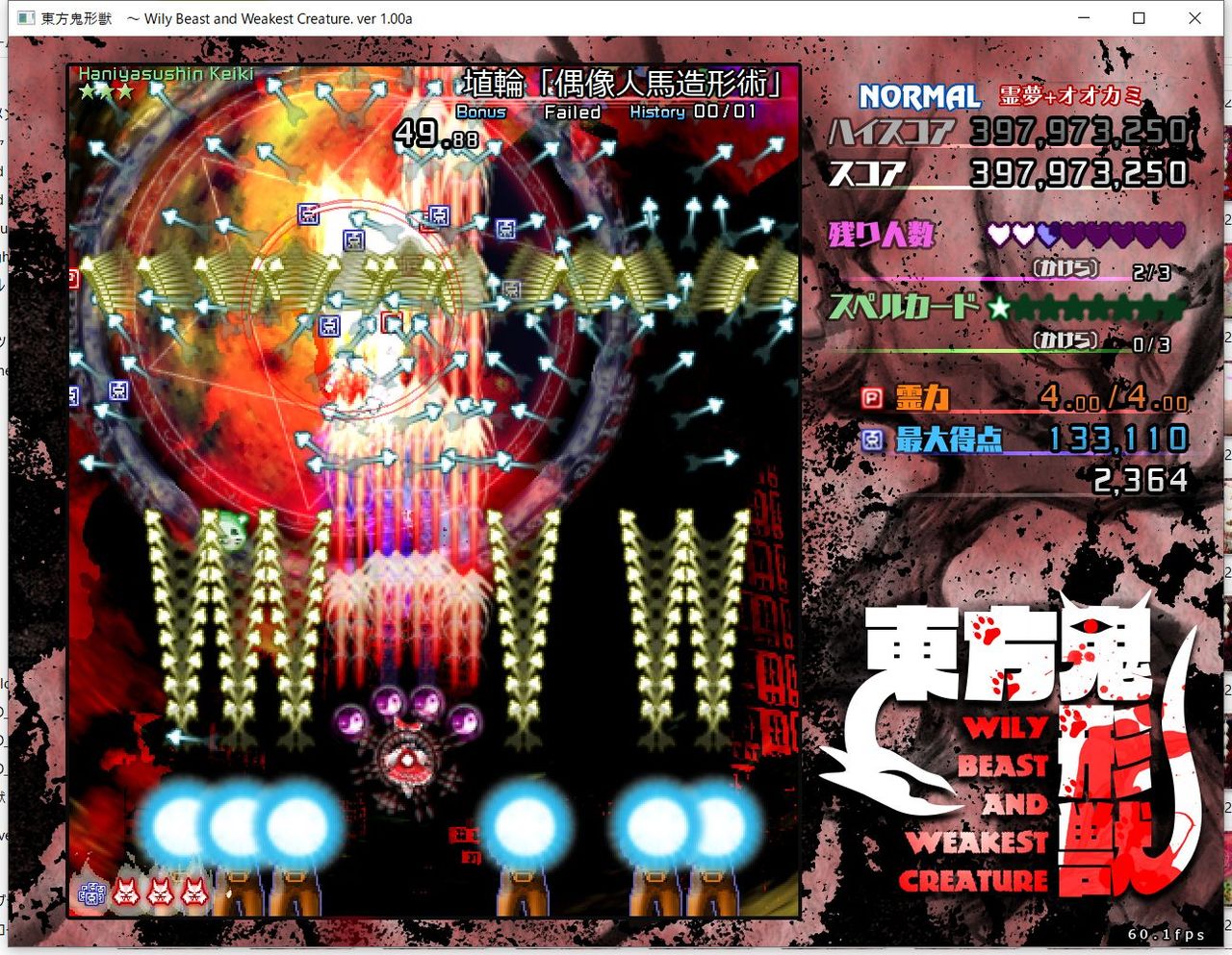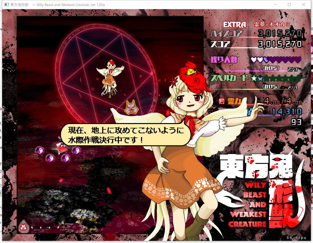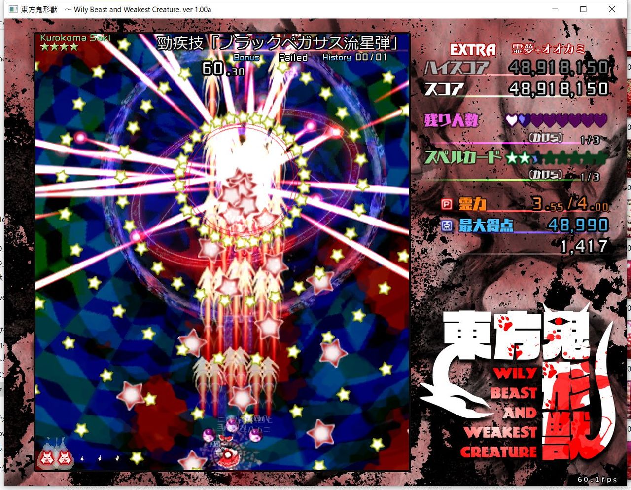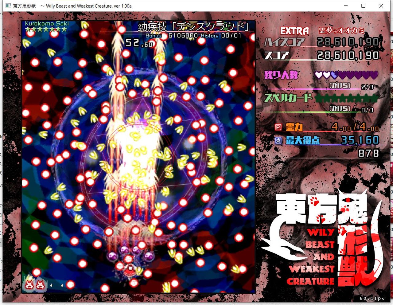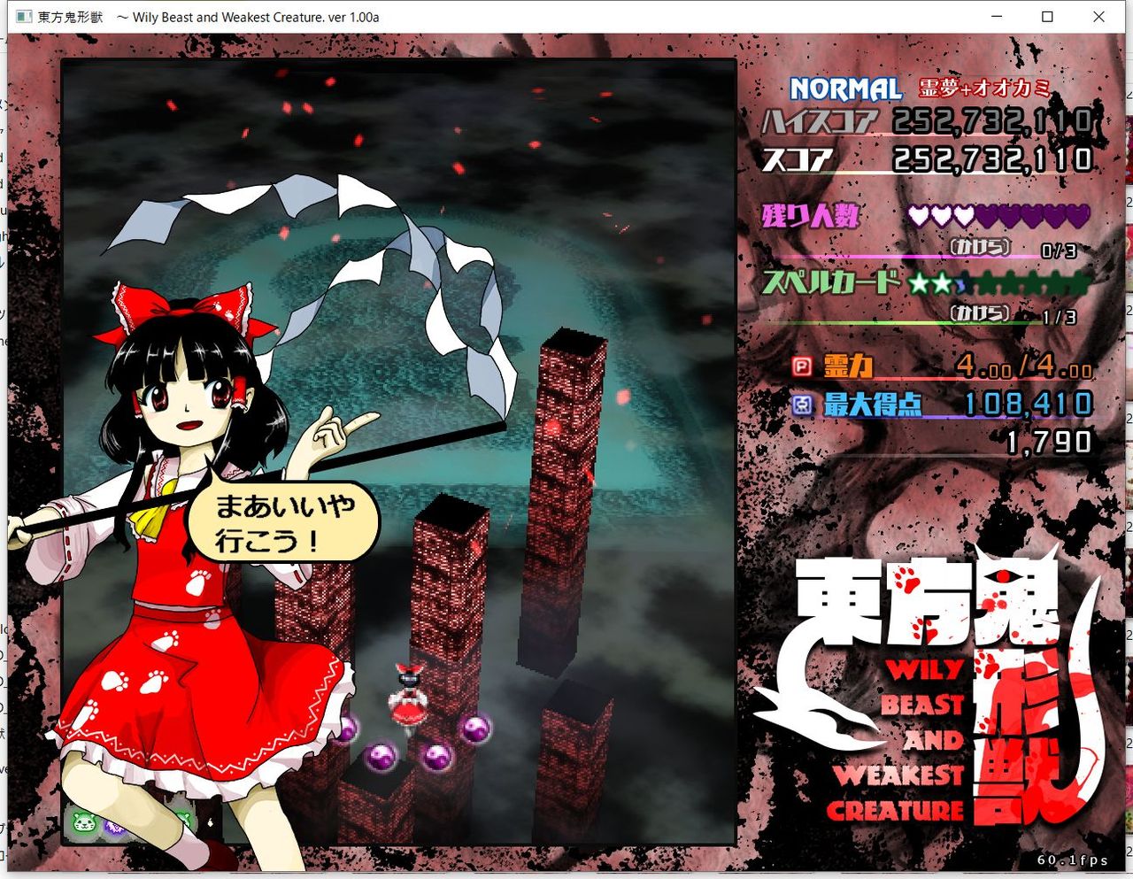 ・4面ボスの一つ目のスペルカードで、ボムを使ってトドメを刺すと稀にアプリが落ちる