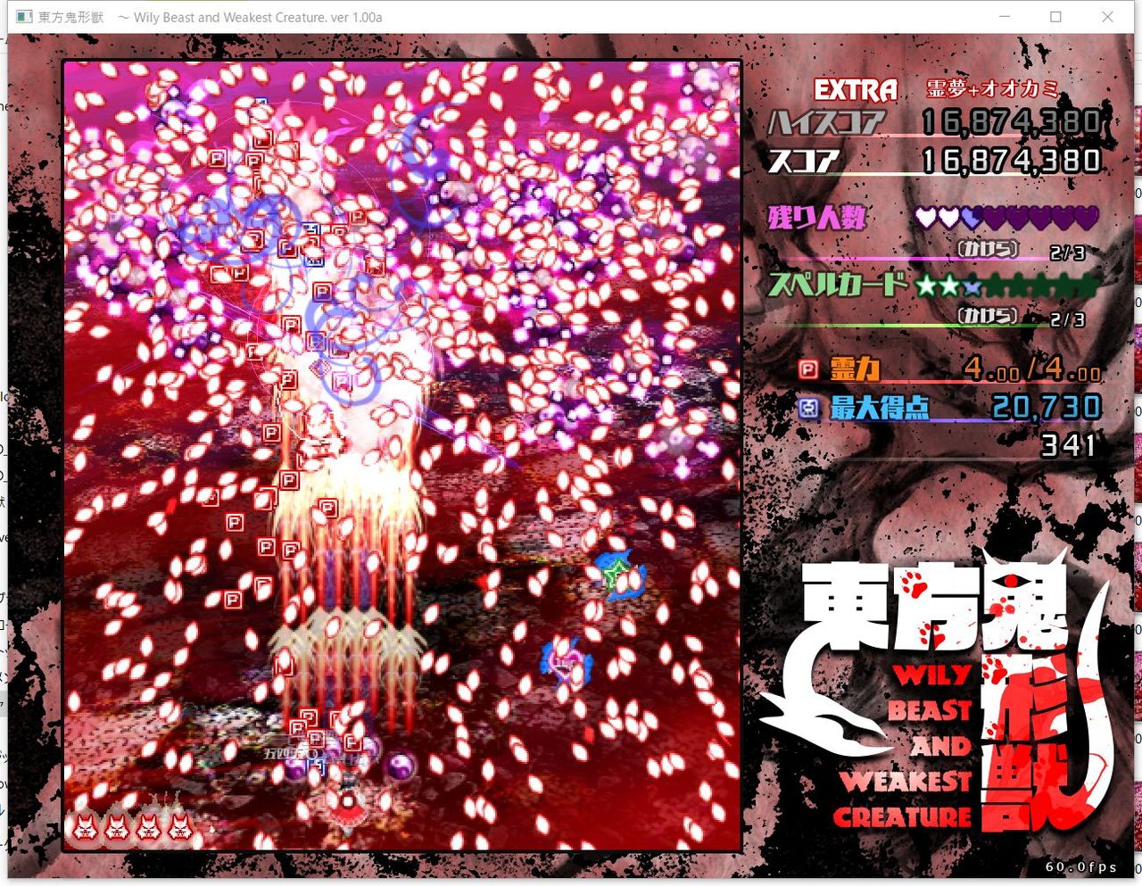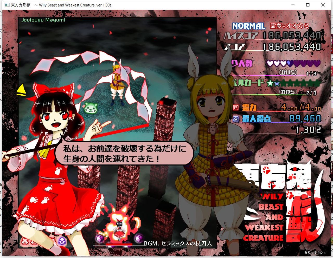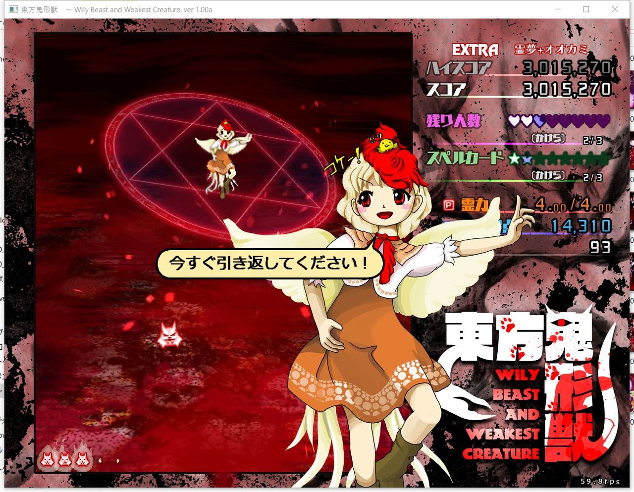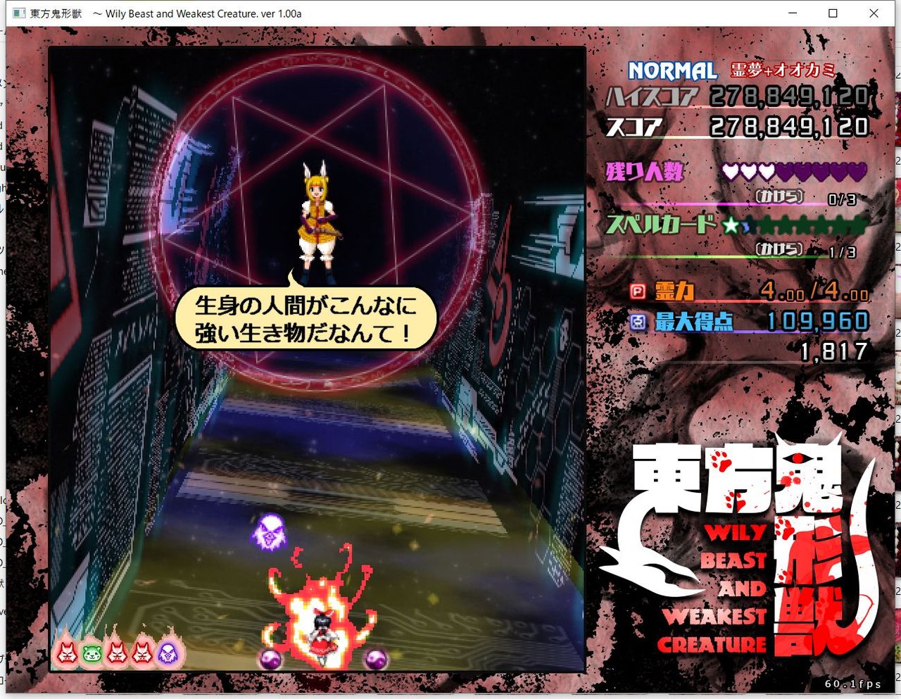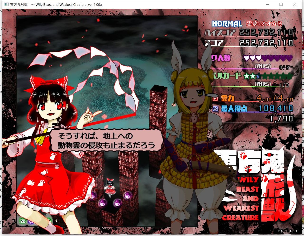 ・4面ボスの一つ目のスペルカードで、ボムを使ってトドメを刺すと稀にアプリが落ちる