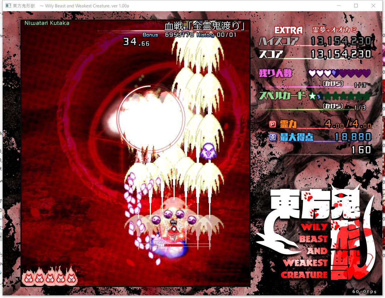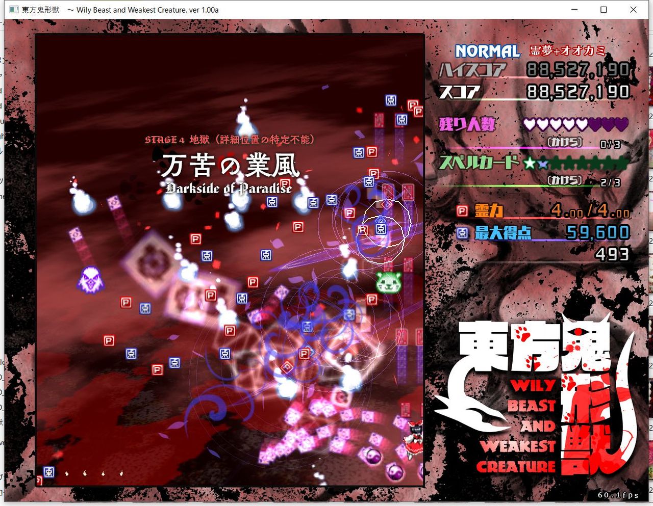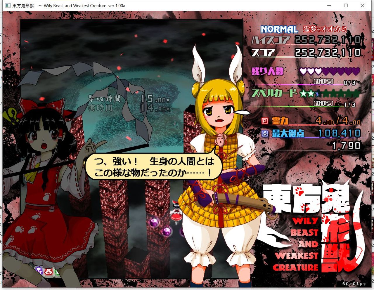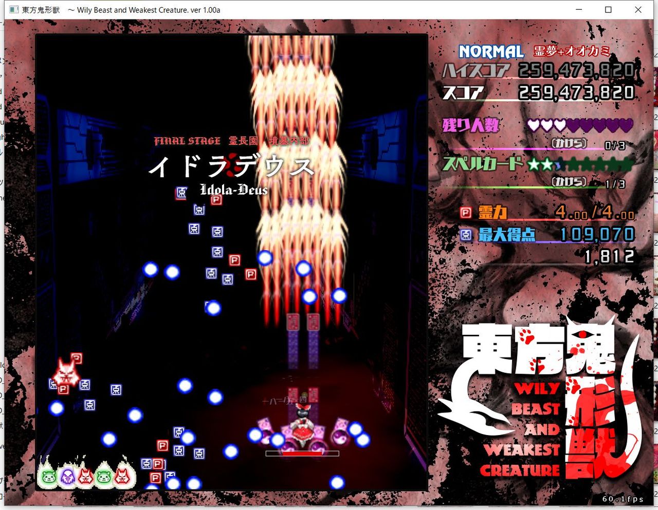 ・4面ボスの一つ目のスペルカードで、ボムを使ってトドメを刺すと稀にアプリが落ちる