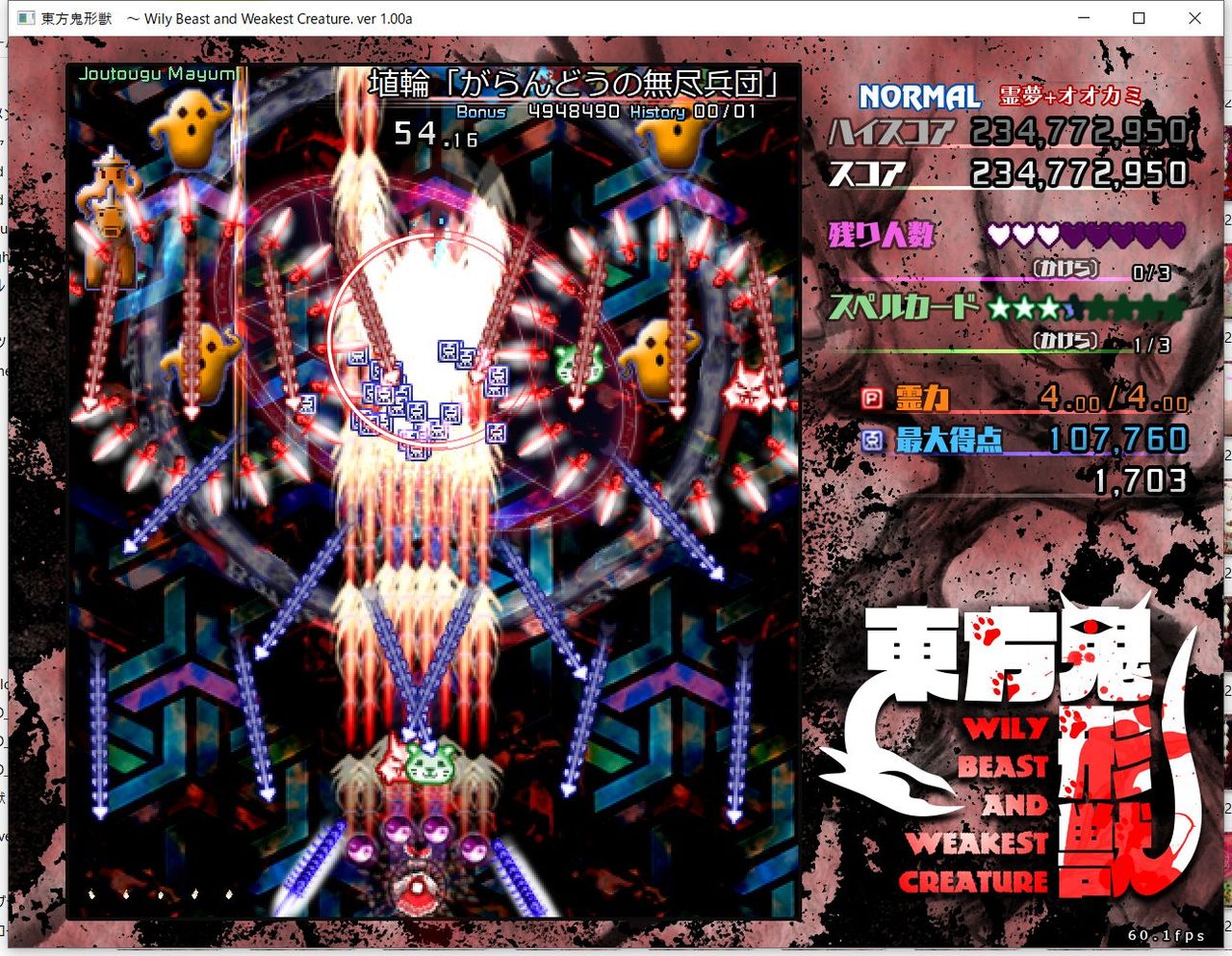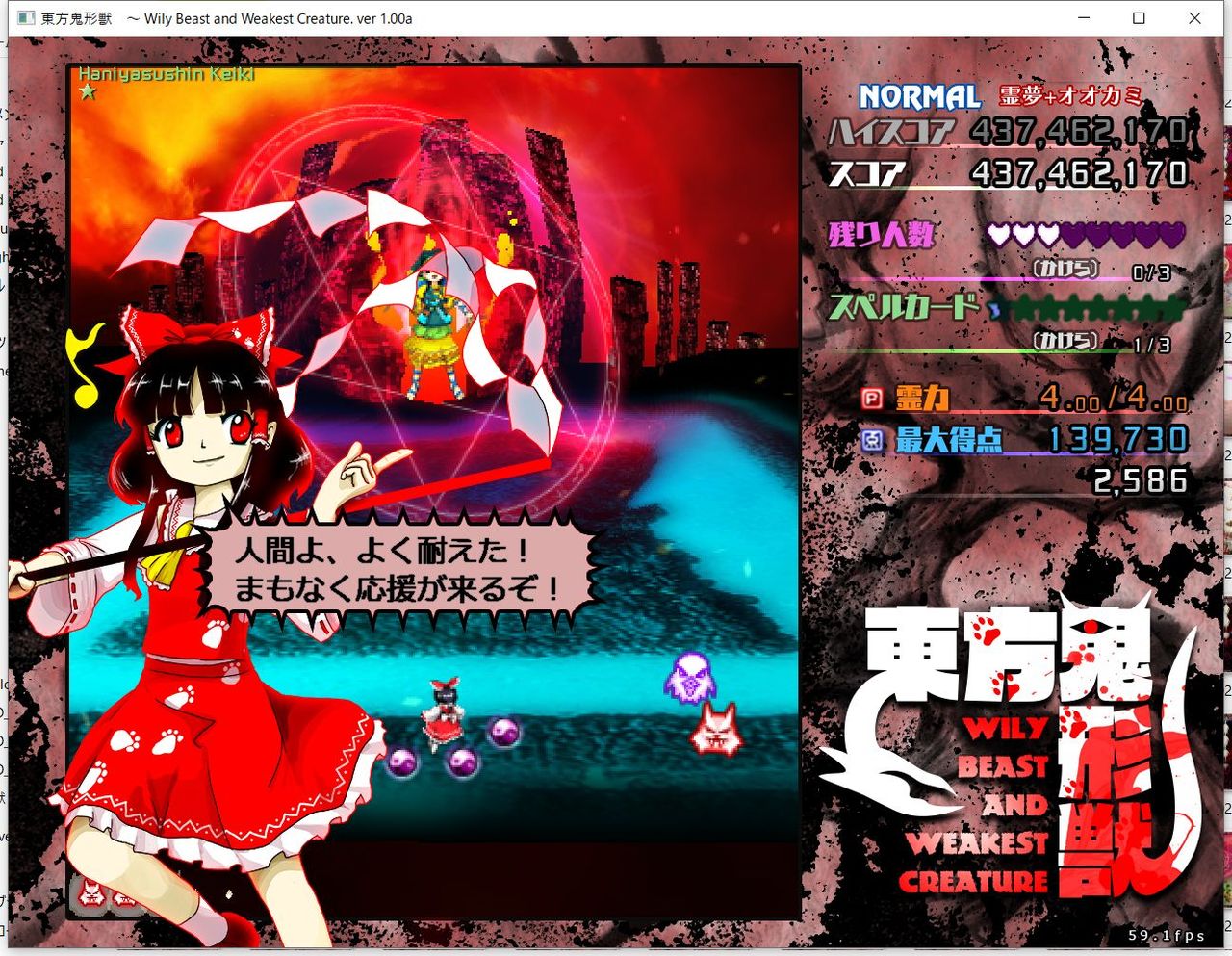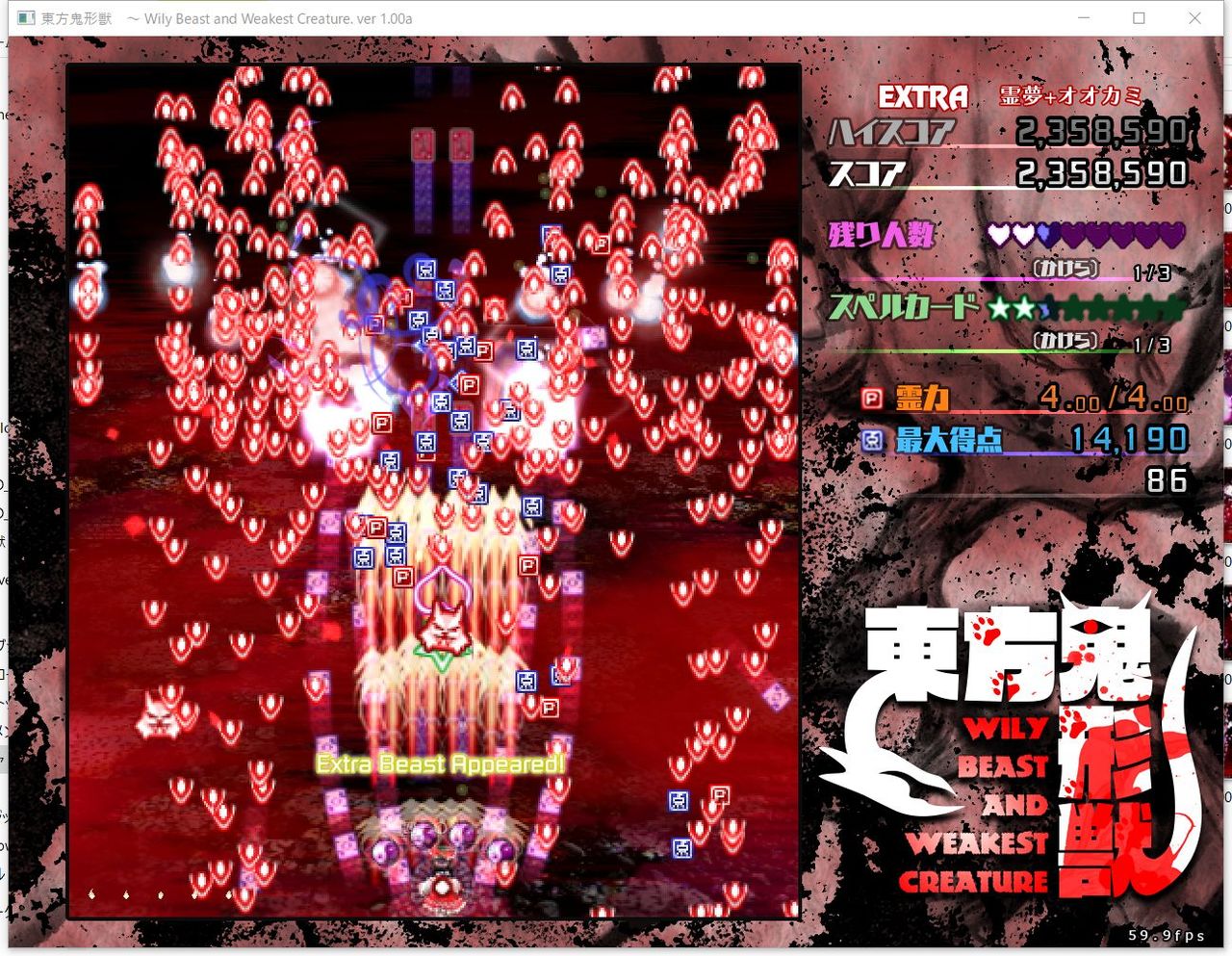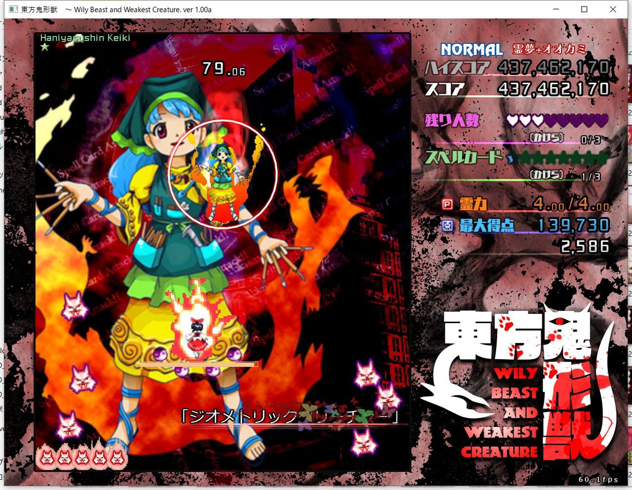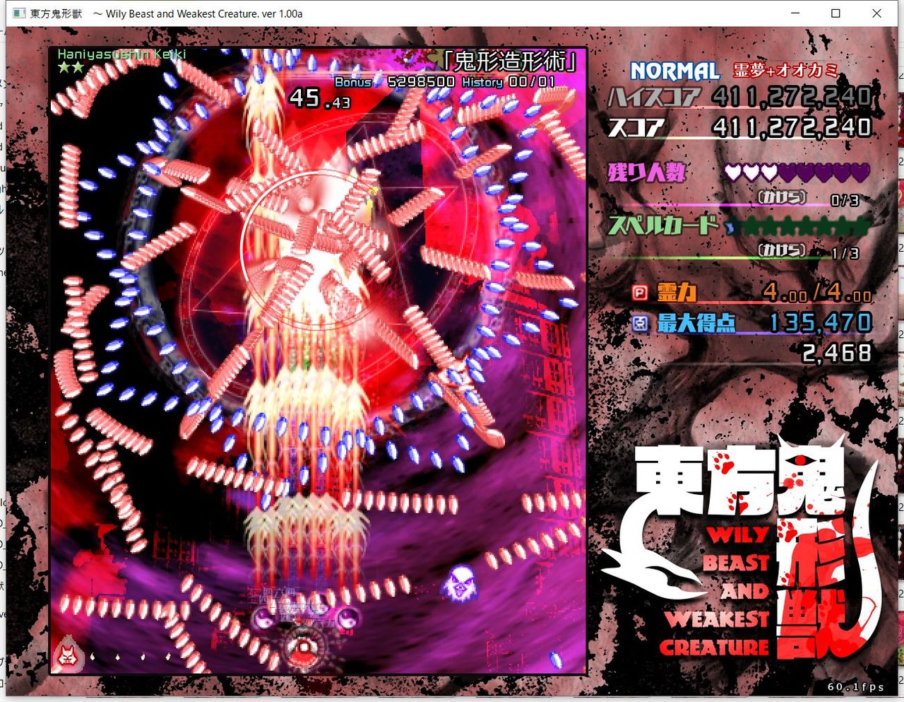 ・4面ボスの一つ目のスペルカードで、ボムを使ってトドメを刺すと稀にアプリが落ちる