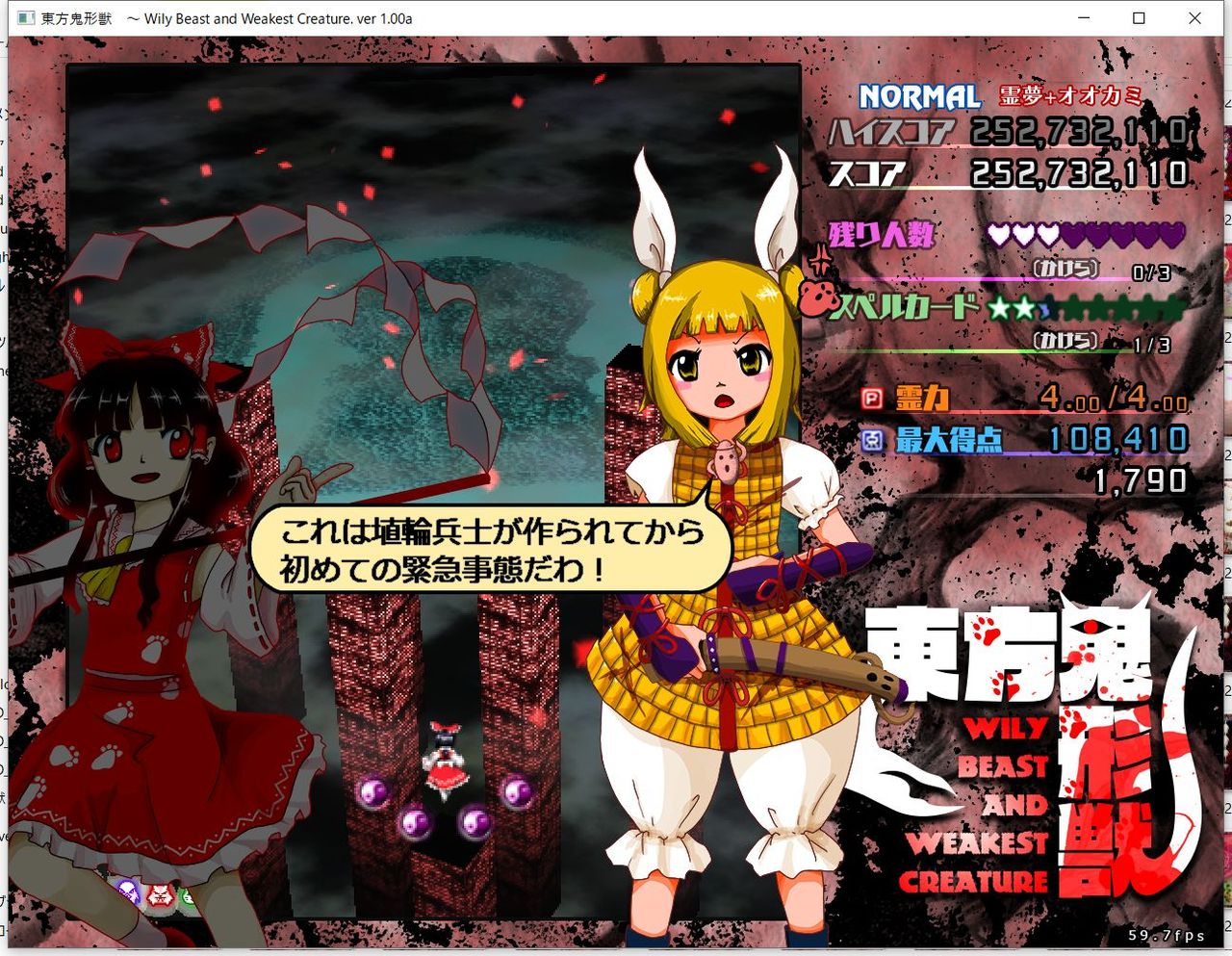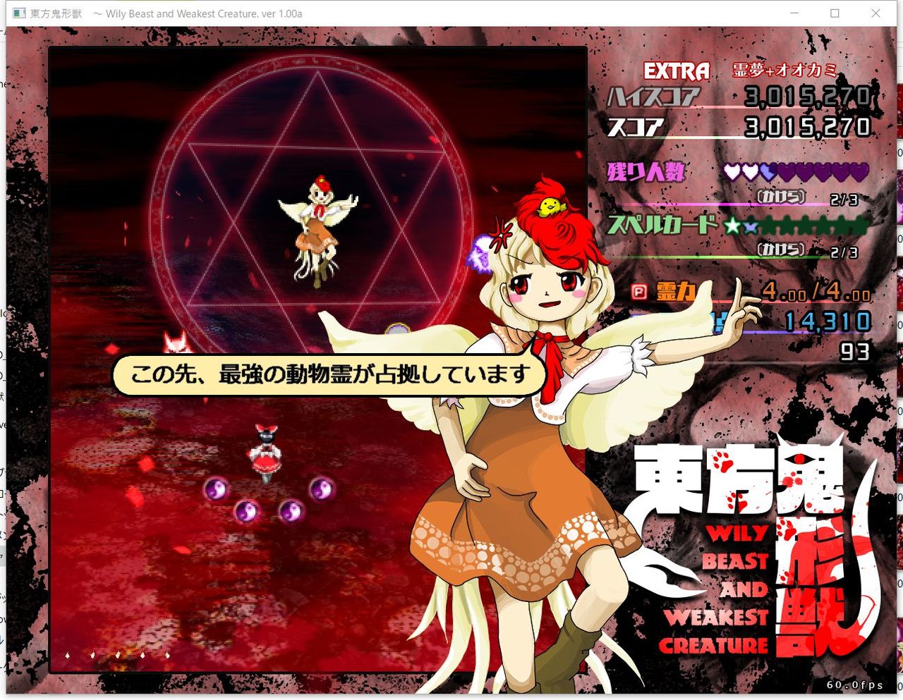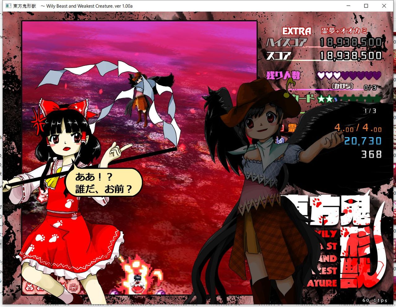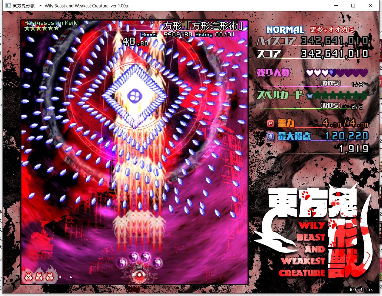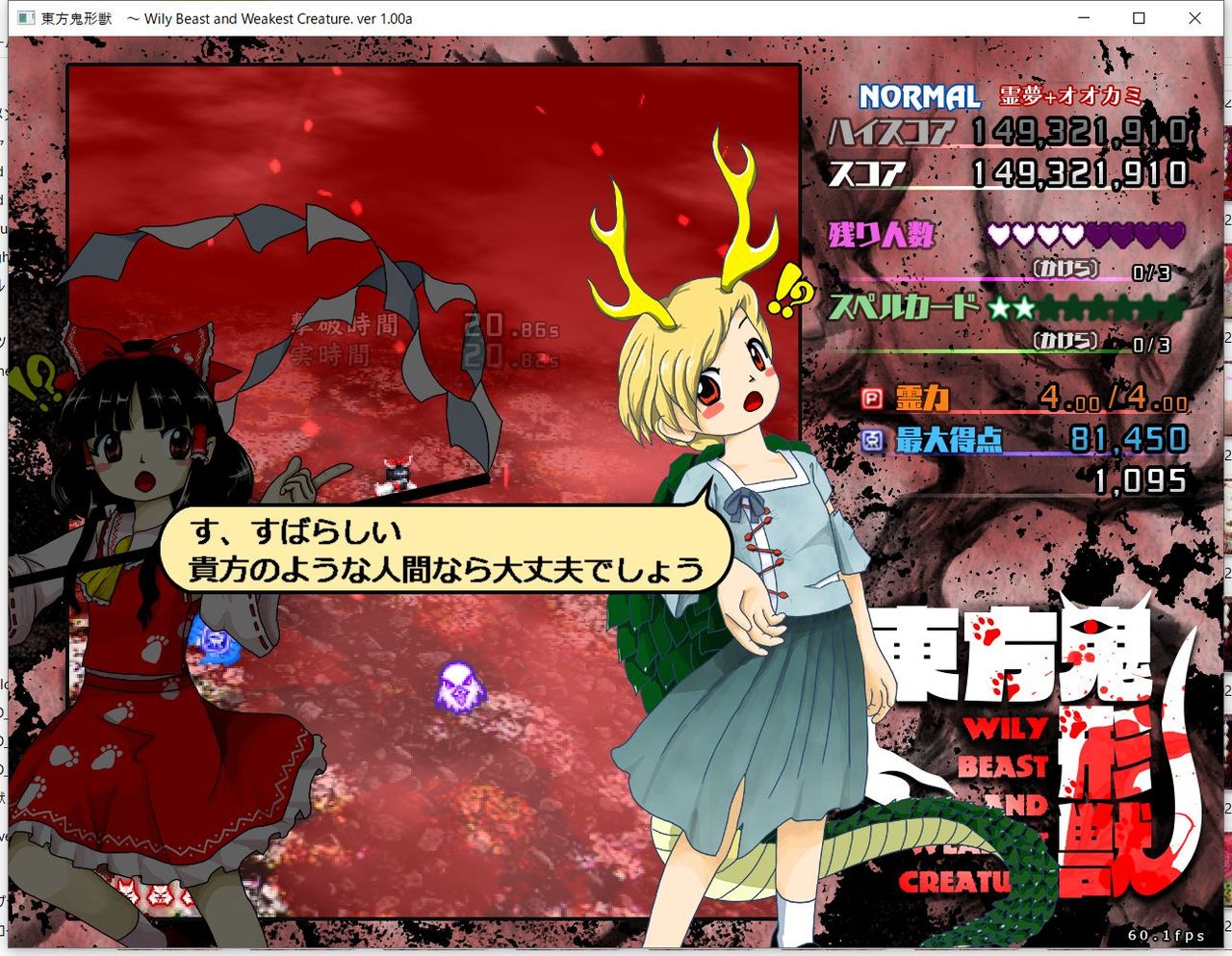 ・4面ボスの一つ目のスペルカードで、ボムを使ってトドメを刺すと稀にアプリが落ちる