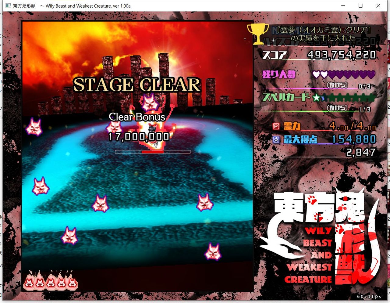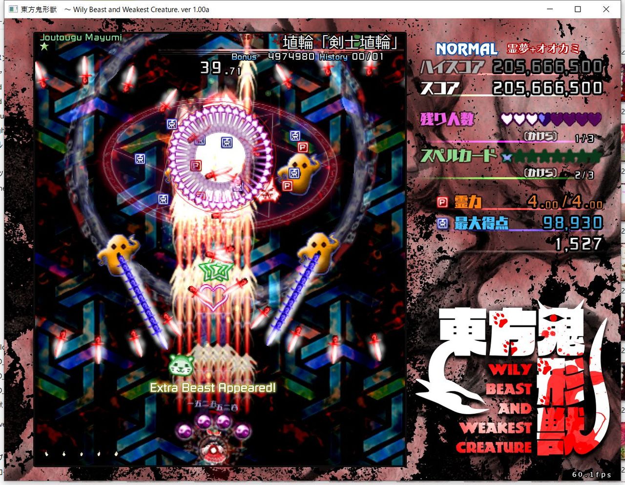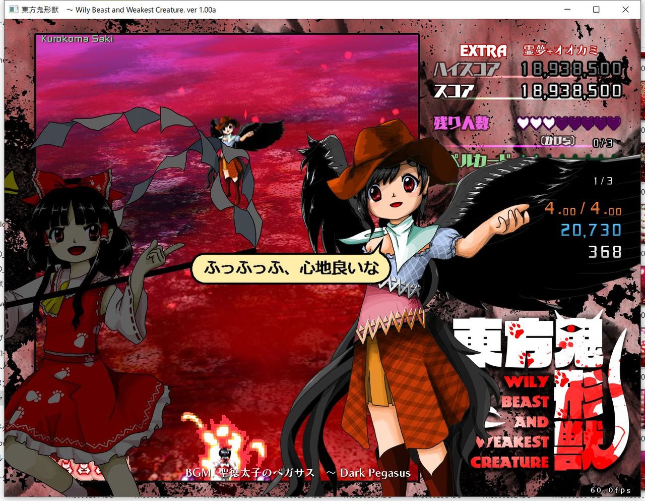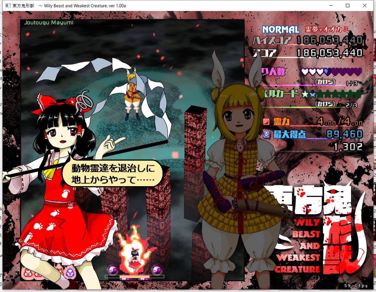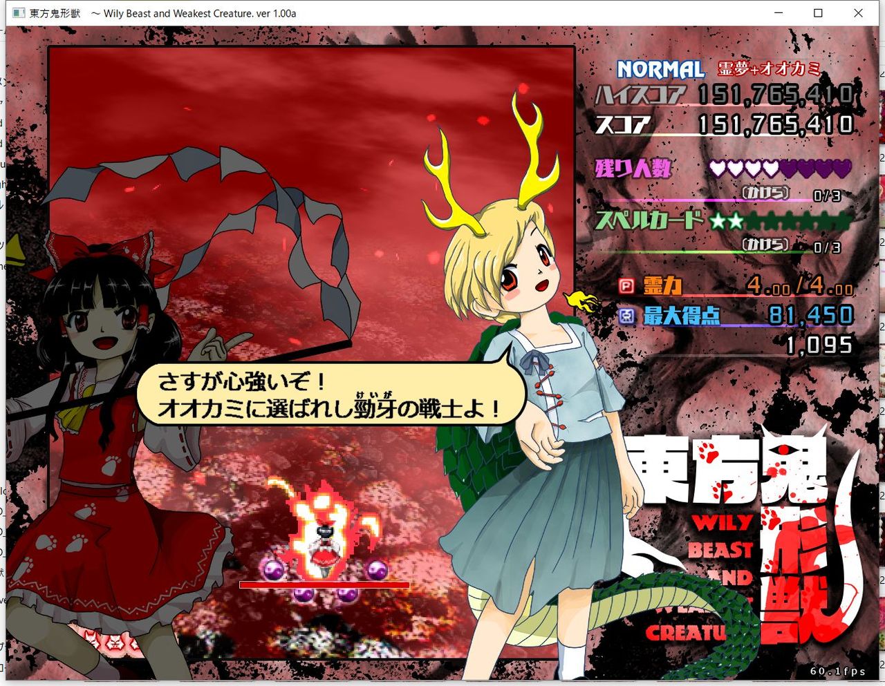 ・4面ボスの一つ目のスペルカードで、ボムを使ってトドメを刺すと稀にアプリが落ちる