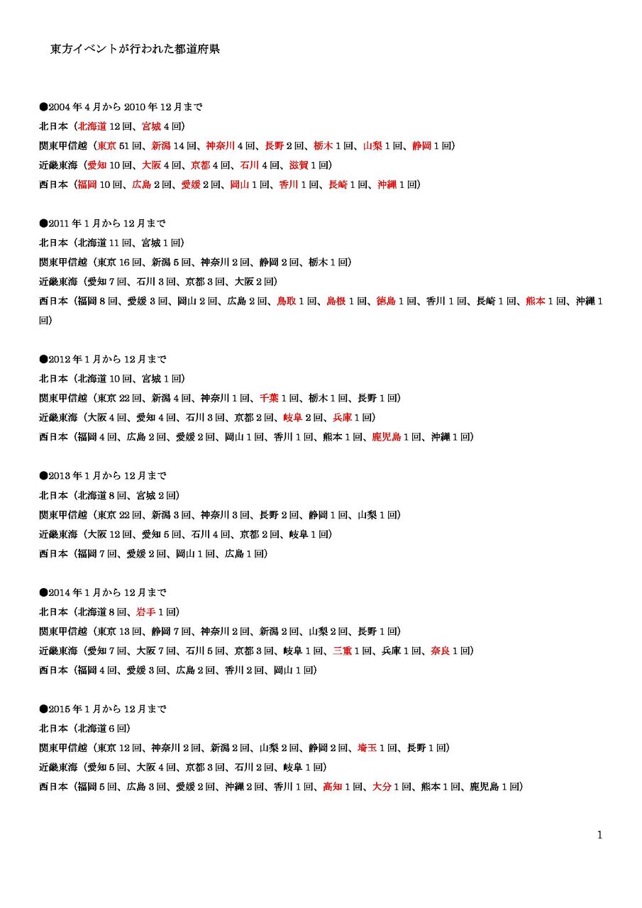 福島県は郡山のビックパレットでオールジャンル同人イベントは実績あるが東方オンリーは無いな