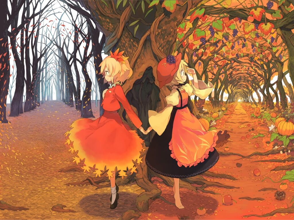 今日は静葉ちゃんの日だそうなので、前に描いたラクガキとアニメ制作に使ってる秋姉妹のキャラクター表のせておきますねー(´◡`)ノ