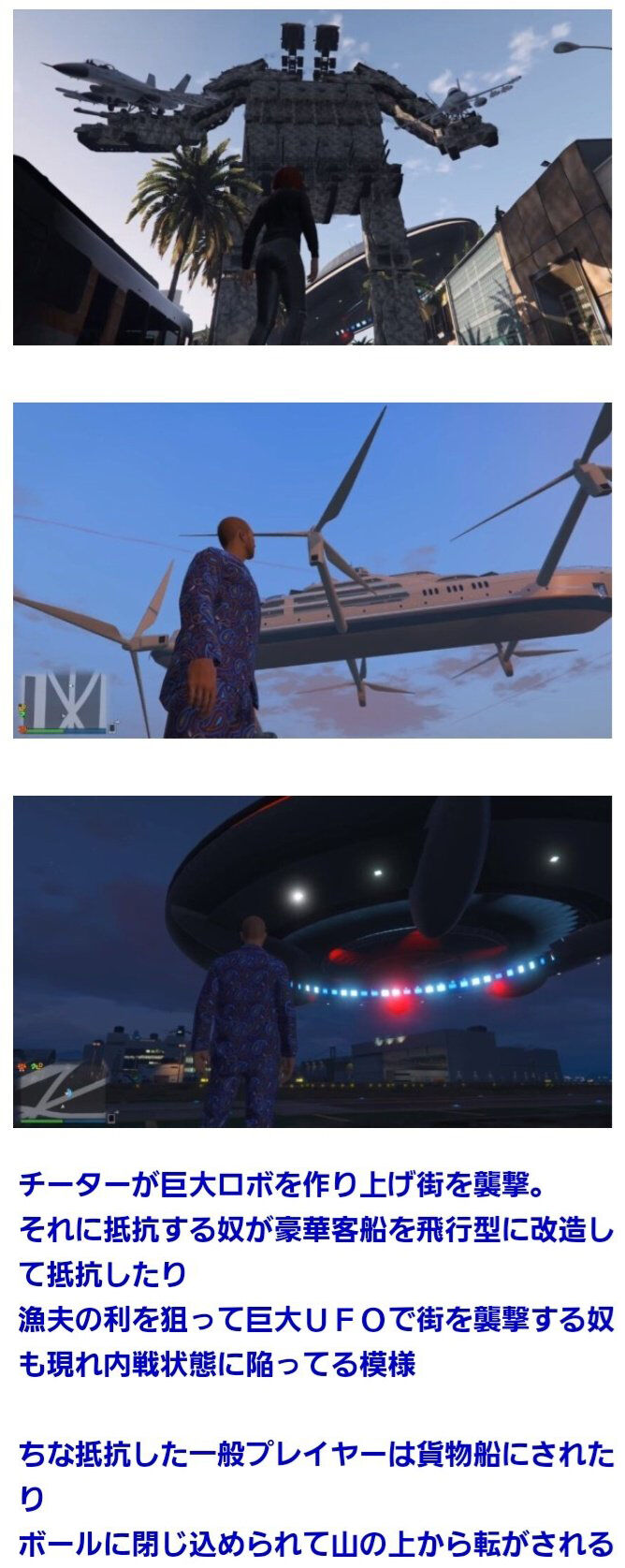 >空飛んでミサイル打てるバイクとか公式チートみたいな車両はあったりするけどPC版のチートはそれの比じゃないからな…