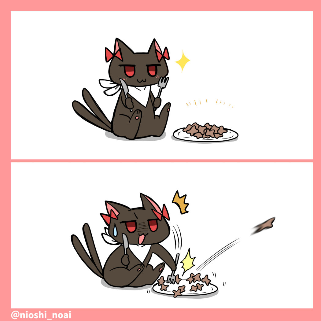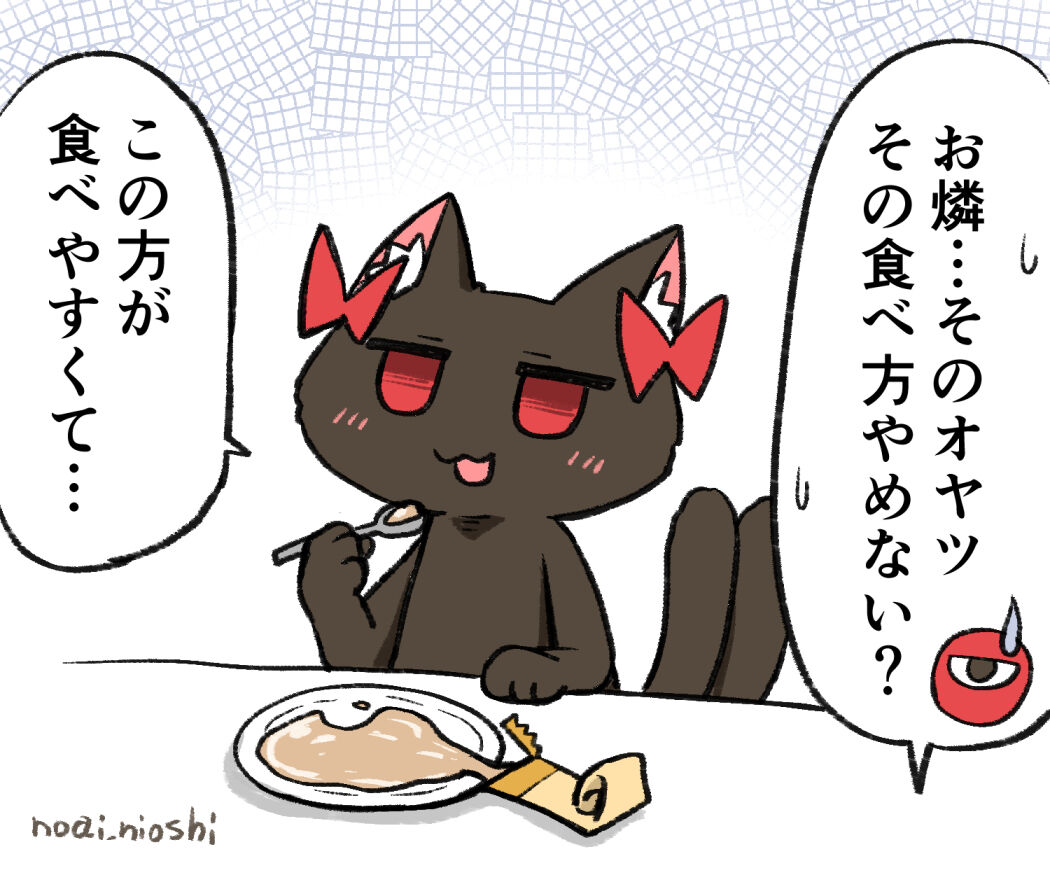 ご飯食べる時はニャンコじゃない方がいいと思う…