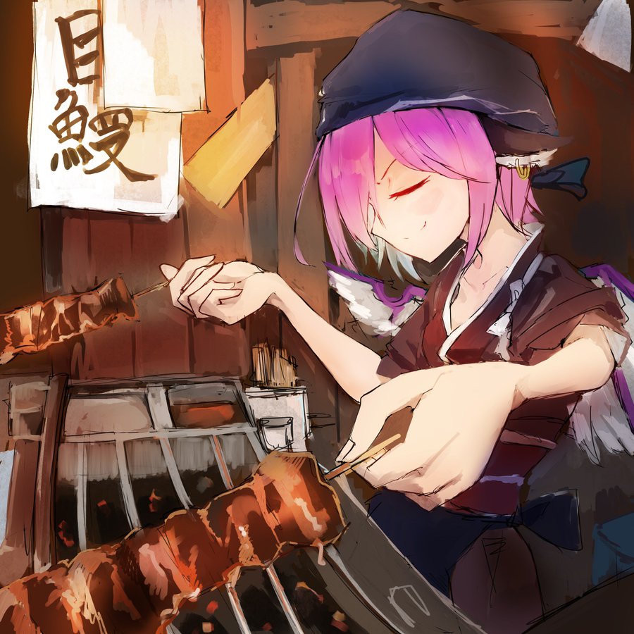 歌いながら八目鰻を焼いて調理する小柄な夜雀がいる料理店
