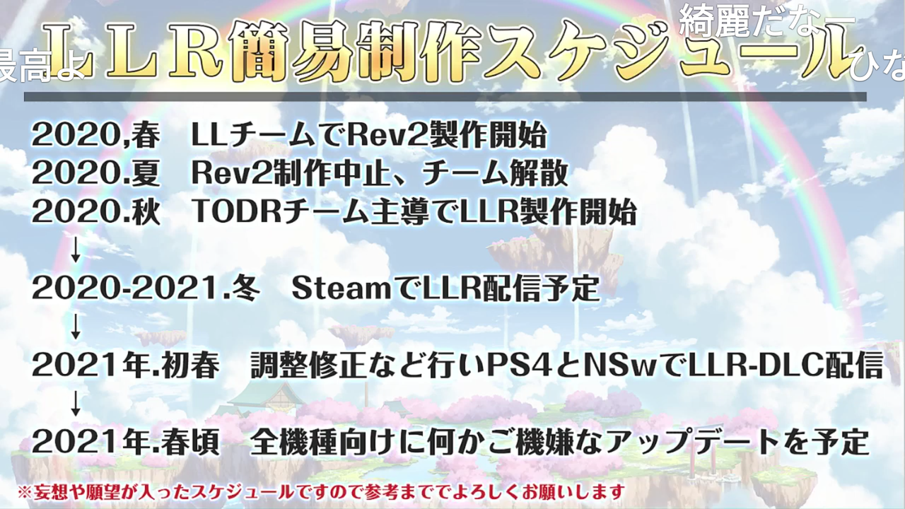 発売前後からユーザー方には大変ご不快な思いをさせ続けた上に今から開発スタートとなって大変恐縮ですが、ふし幻LLRは初代ふし幻からTODRまであった「東方ゲームとして触れてワクワクすること」「自分たちが欲しい遊びを自分たちで作る」の2点をしっかり見直して再始動させて頂きたいと思っています。