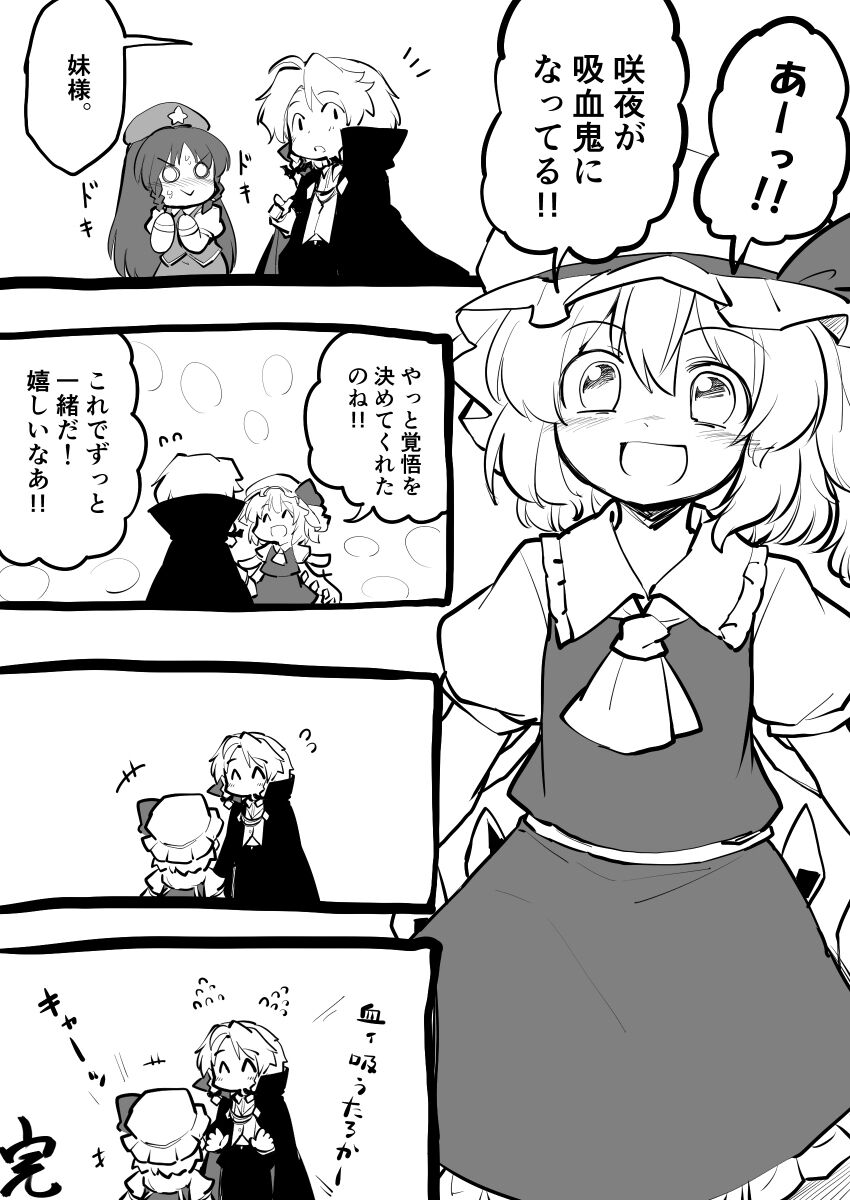 咲夜さんがいなくなるのが嫌になって無理やり血を与えて自分の眷属にしちゃうフランちゃんいいよね