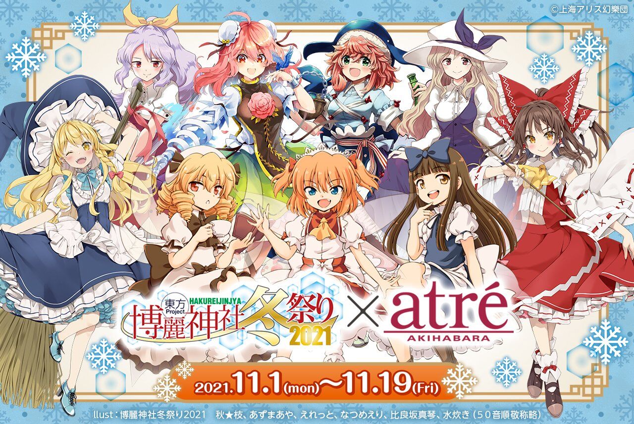 2021年11月1日(月)~11月19日(金)にて、東方Project×アトレ秋葉原「博麗神社~冬祭り2021」コラボ開催決定!