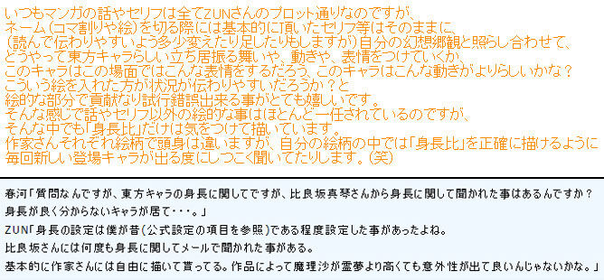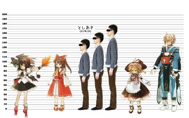 >身長の公式設定はどのキャラも無いはず…書籍で描写されたものから推量するくらいで店主が180ある説も香霖堂からだろうしね