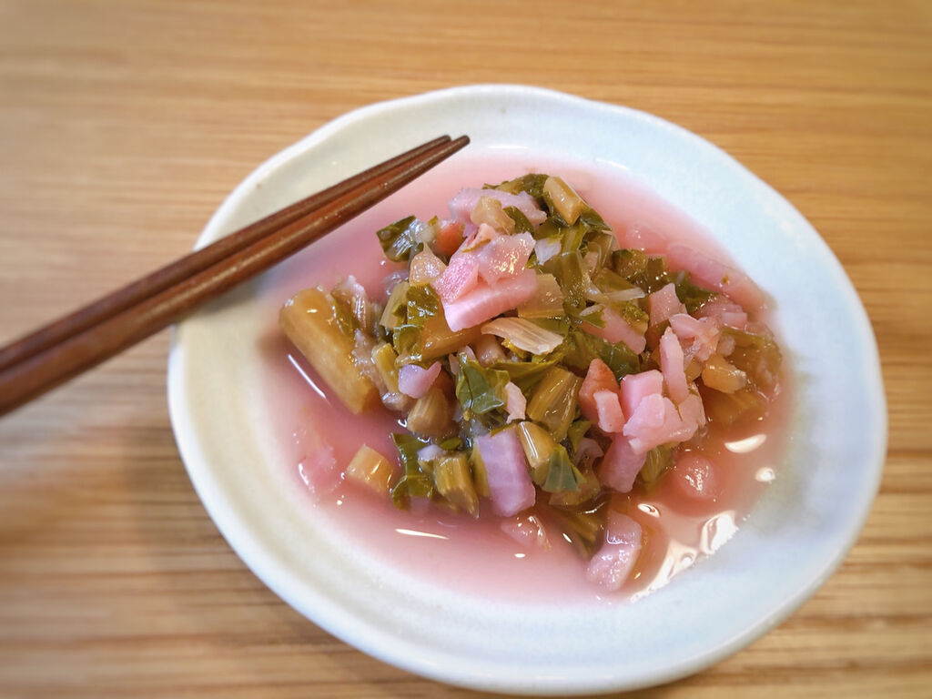 と思っていたんですが説明をみると赤カブの葉っぱを漬け込んだ漬物みたいです。