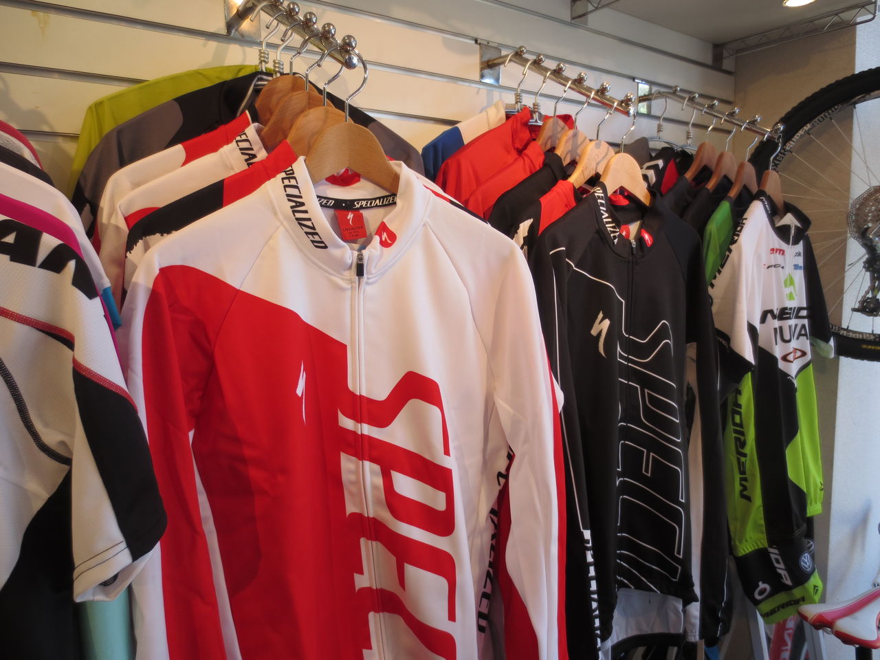 少し前から置いてありましたが、SBC厚木店に「TEAM LAMPERE MERIDA」ジャージが展示してあります。