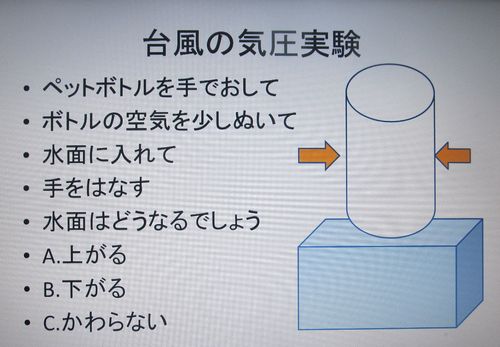 実験は気圧が低いと高潮がおこるというもの