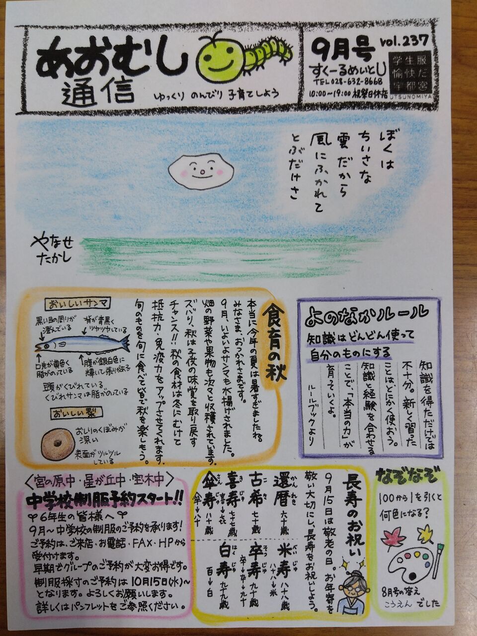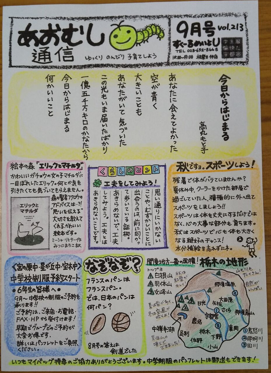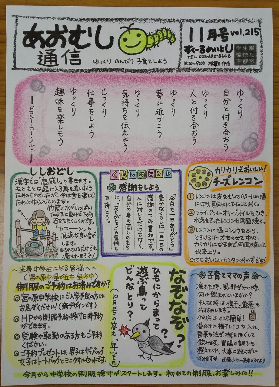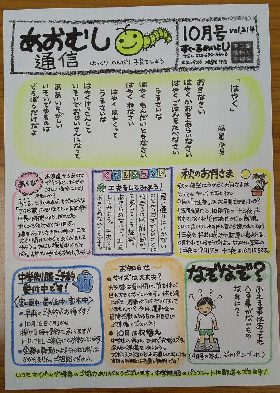 あおむし通信10月号でした