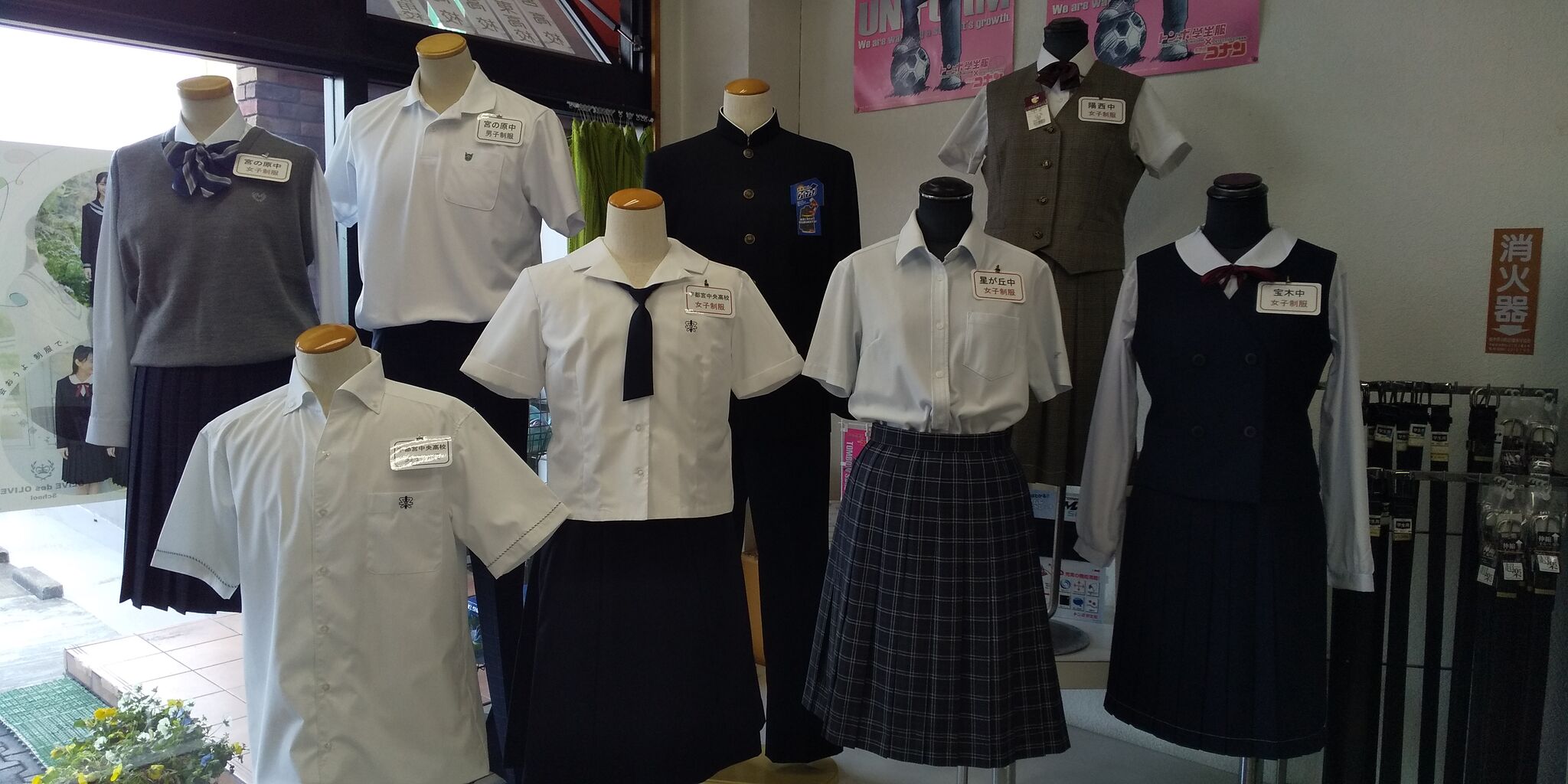 まずは運動着から。その後冬の制服、夏の制服と合わせていきます。