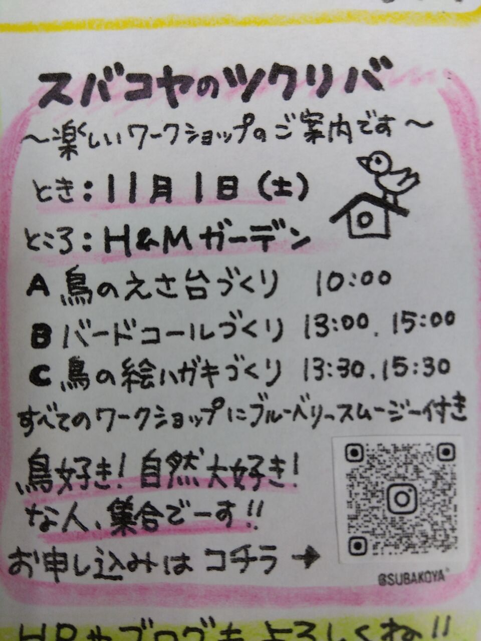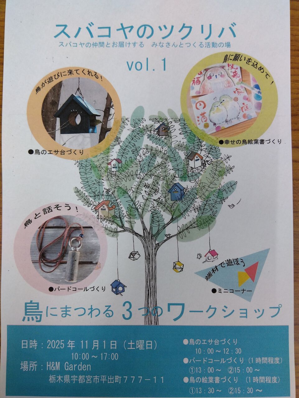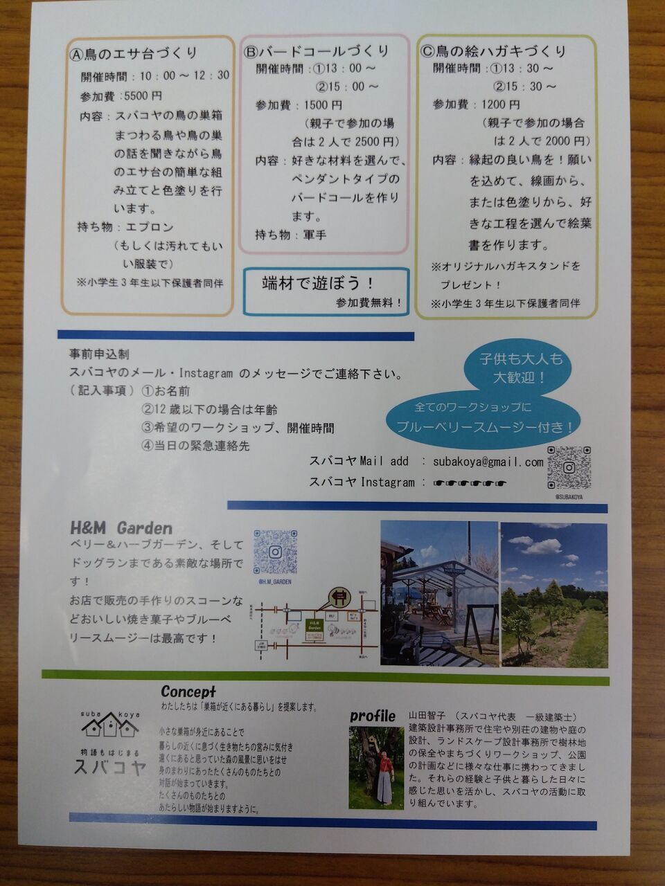 あおむし通信と一緒に皆さまにお渡ししているイベントのチラシ、スバコヤのツクリバの告知です!