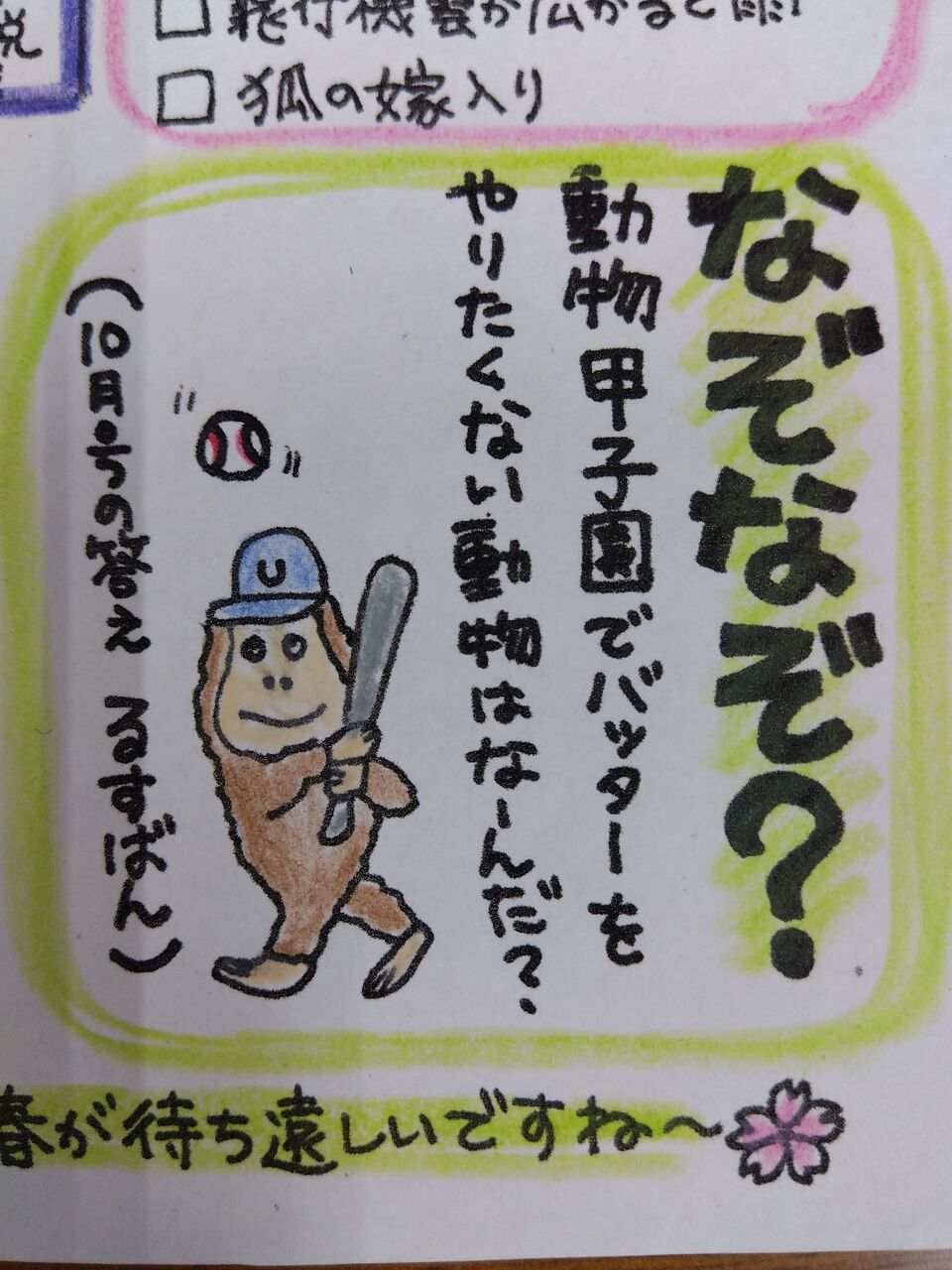 なぞなぞの答えは、